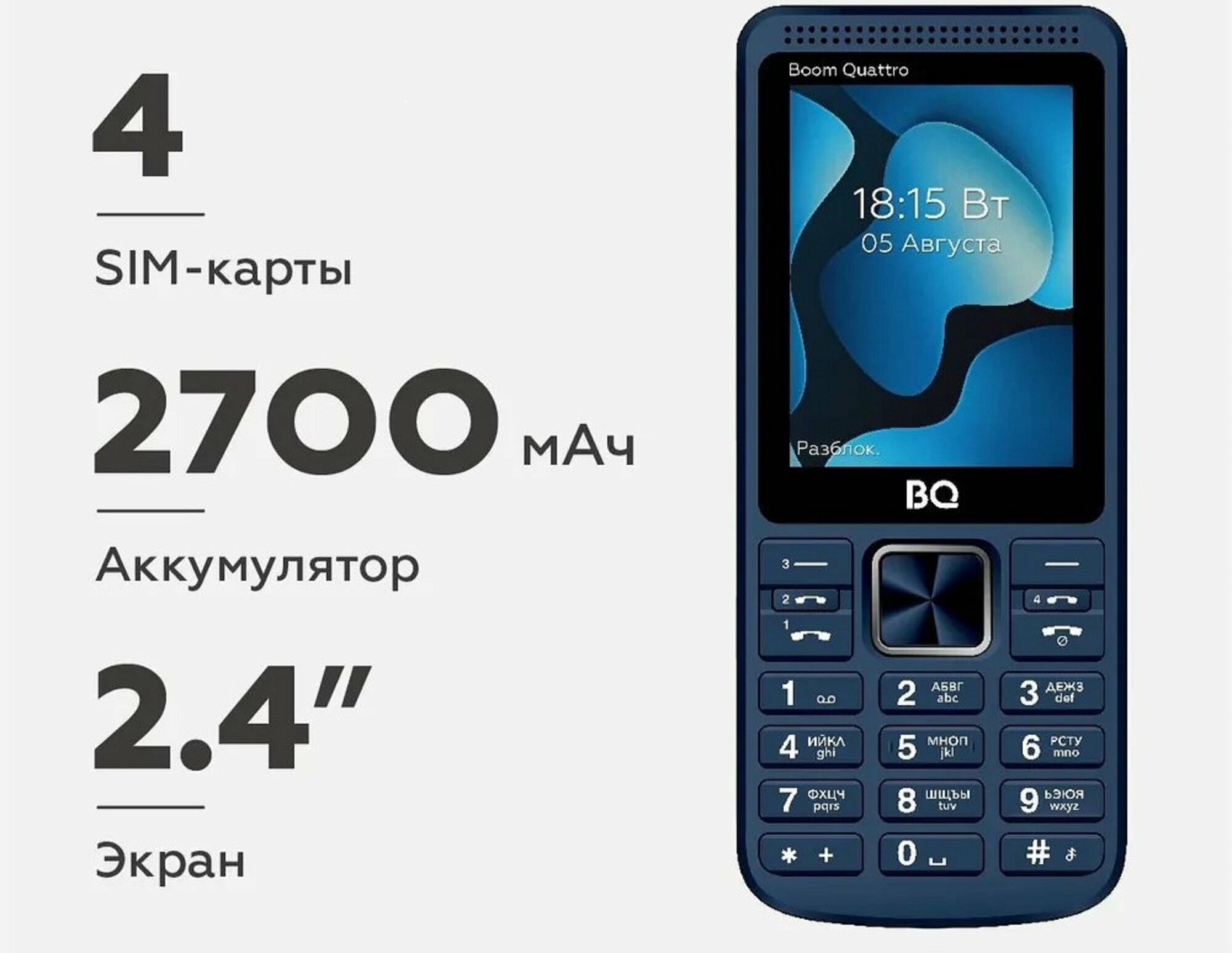 Screen diagonal: 2.40, number of main cameras: 1, battery capacity: 2700 mAh, screen resolution: 320×240, memory card slot
