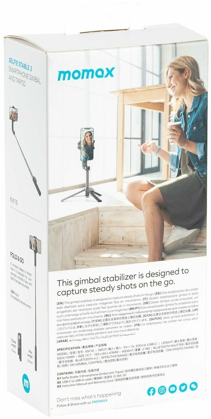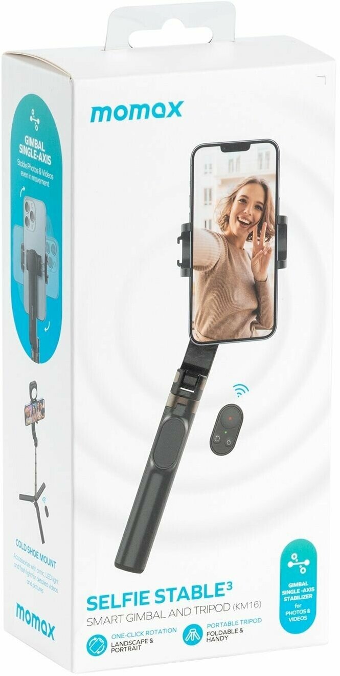 Momax Selfie Stable 3 Smart Gimbal and Tripod KM16D, black