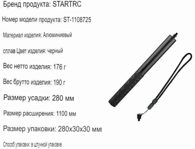 Monopod, selfie stick STARTRC 26-120cm DJI action 3 /Insta360 ONE X3 / GoPro