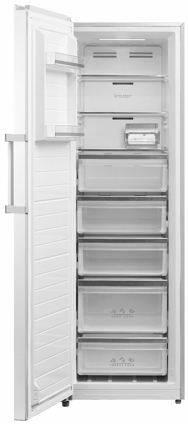 Freezer type: cabinet, defrosting: No Frost, total volume: 280 l, height: 185 cm, width: 59.50 cm, depth: 61.80 cm, energy class: A+, number of drawers/shelves: 5, body color: white, number of chambers : 1, control type: electric