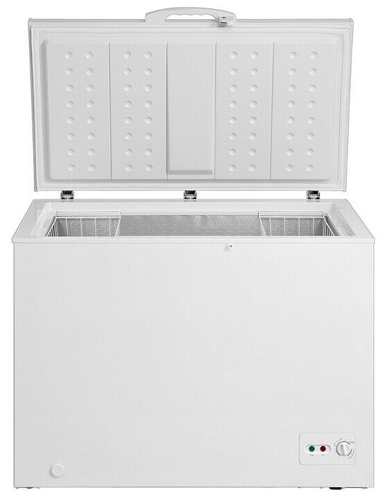 Freezer type: chest, defrosting: manual, total volume: 340 l, energy consumption class: A+, number of chambers: 1, control type: electromechanical, freezing power: 14 kg/day, noise level: 43 dB