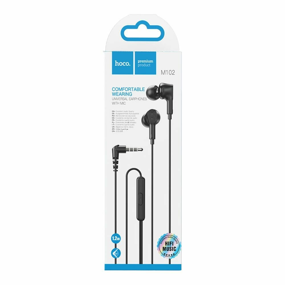 Vacuum headphones Hoco M102 are comfortable and easy to use, have a cable length of 1.2 m. Equipped with volume control and microphone