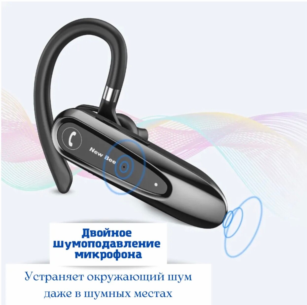 Design: in-ear, device type: mono Bluetooth headset, ANC active noise reduction system, design features: waterproof, for sports, microphone, detachable cable, backlight, plug connector:
