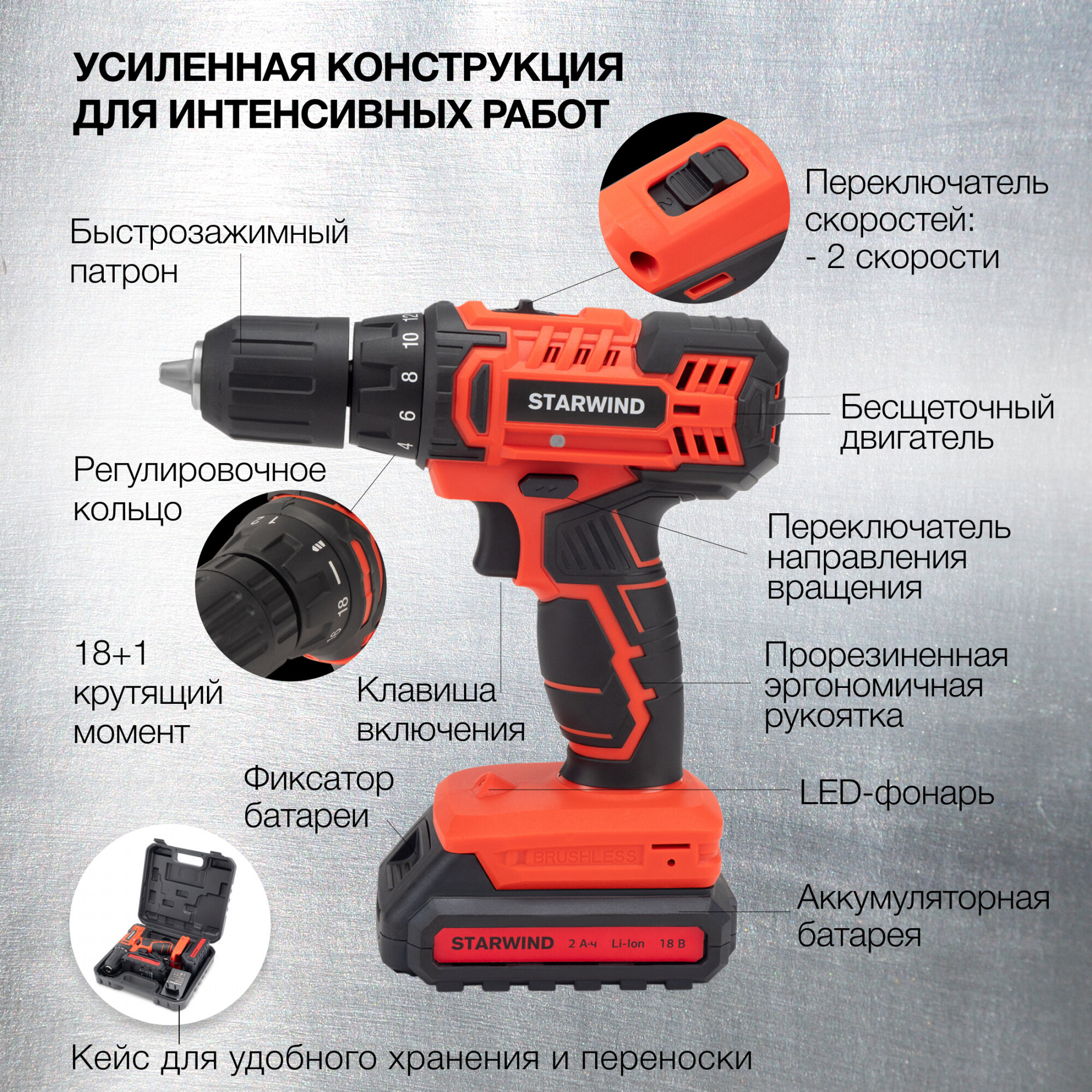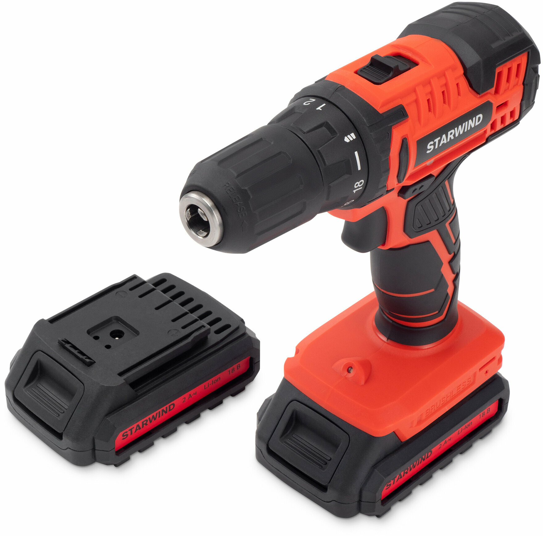 Power supply: battery, battery voltage: 18 V, maximum torque: 45 Nm, number of batteries included: 2, shock presence, brushless motor, chuck type: quick-release, max. drill diameter