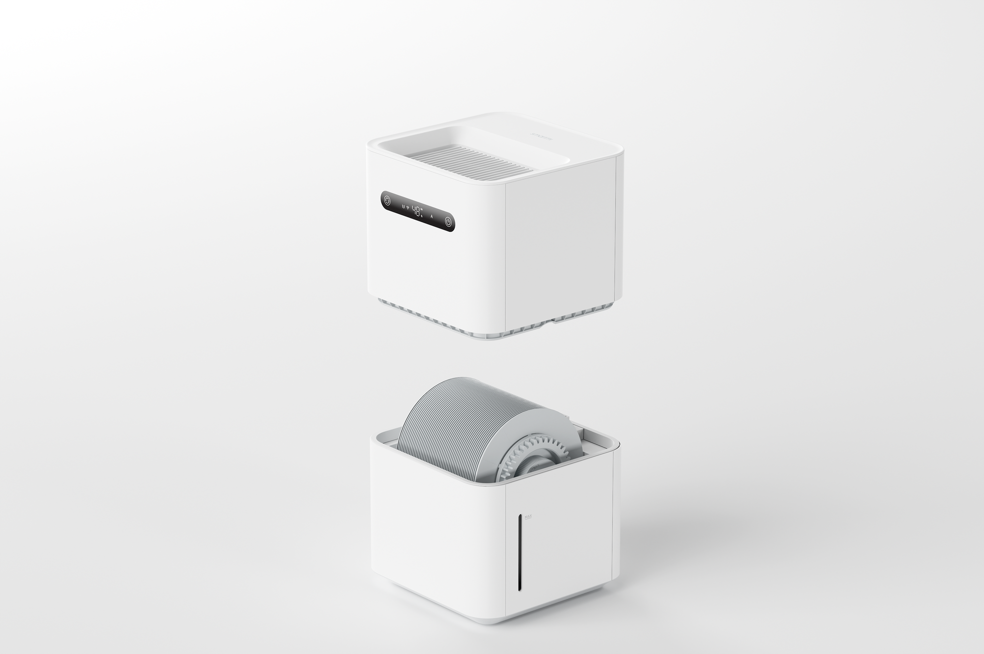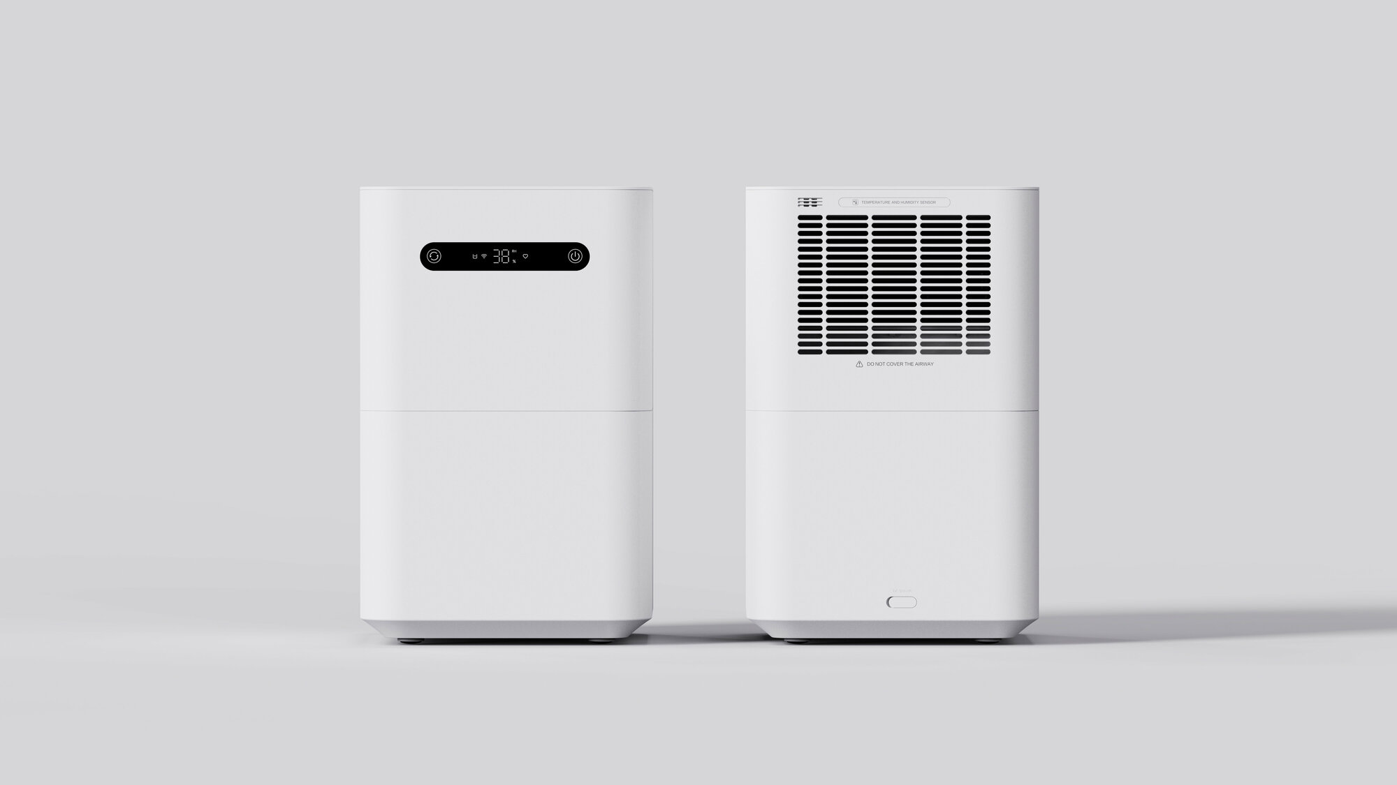Waterproof housing, hygrostat, display, operation indication, fan speed/evaporation intensity adjustment, timer, humidifier, control from a smartphone