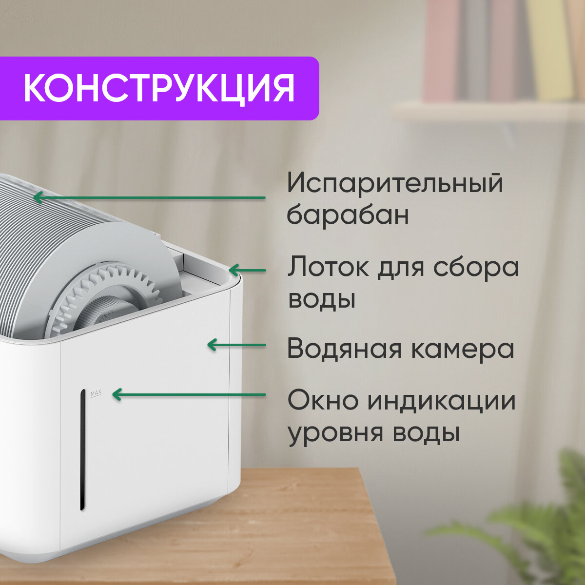 Type: air humidifier, room area: 36 m², humidifier type: traditional, additional functions: aromatization, filters: water, water tank volume: 5 l, water consumption: 350 ml/h, installation: floor, tabletop