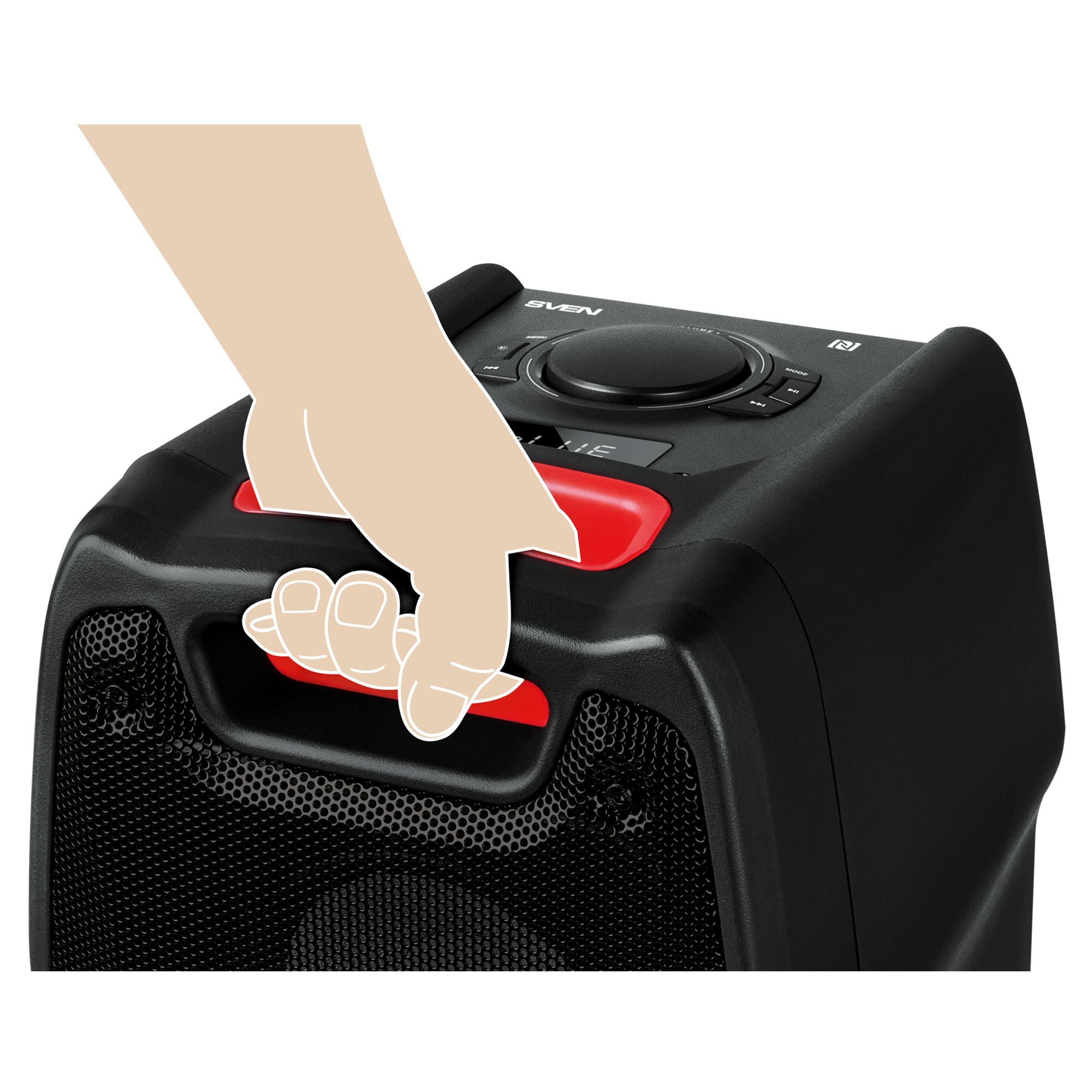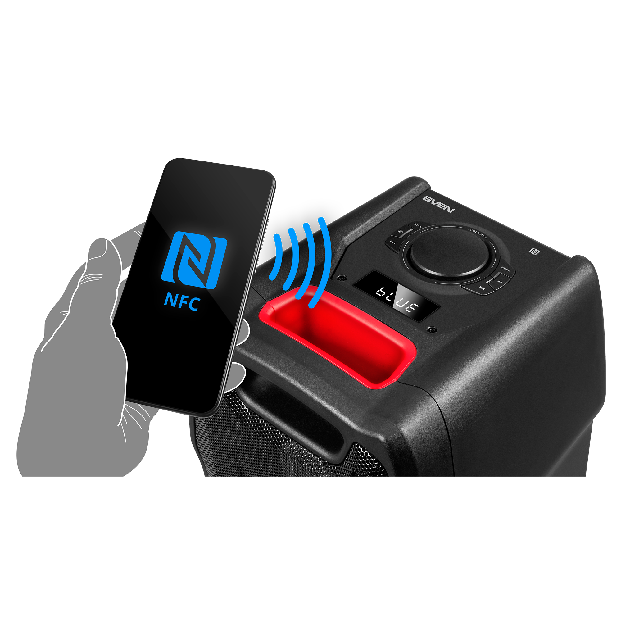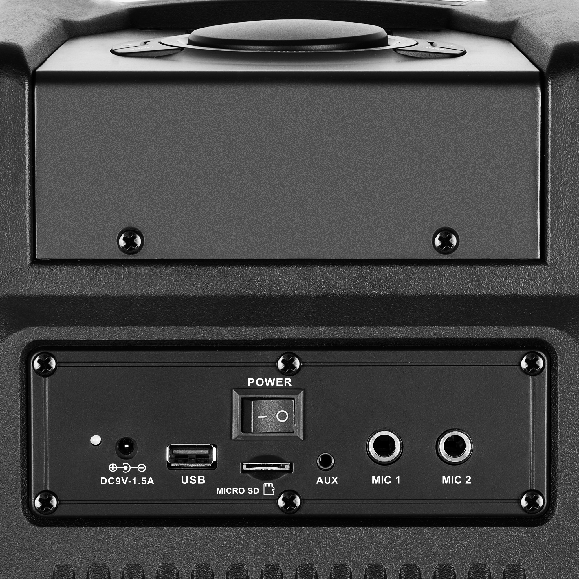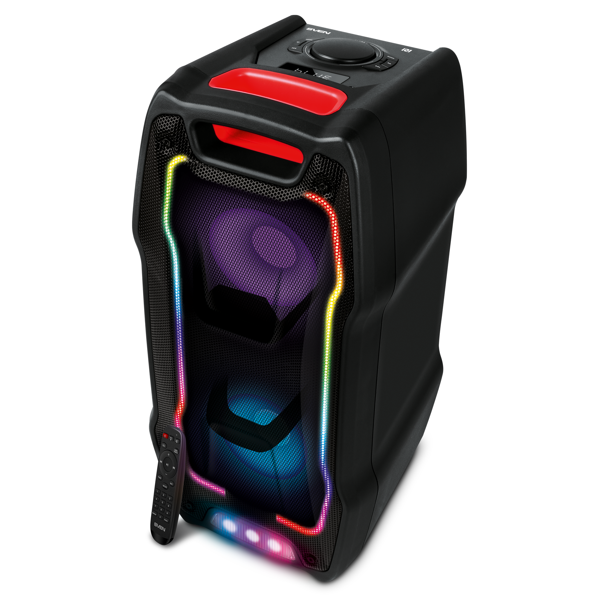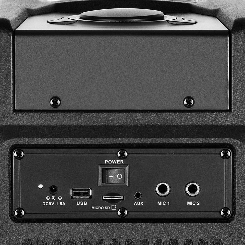 FM radio, NFC, display, karaoke, microSD support, lighting effects
