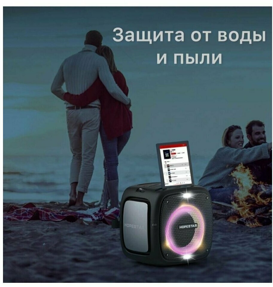 Type: 2.1, total power: 80 W, wireless connection: Bluetooth, connectors and interfaces: USB Type-A for flash drive, audio input mini jack 3.5 mm, microphone input - jack 6.3 mm, features: built-in microphone HandsFree function, Power Bank mode