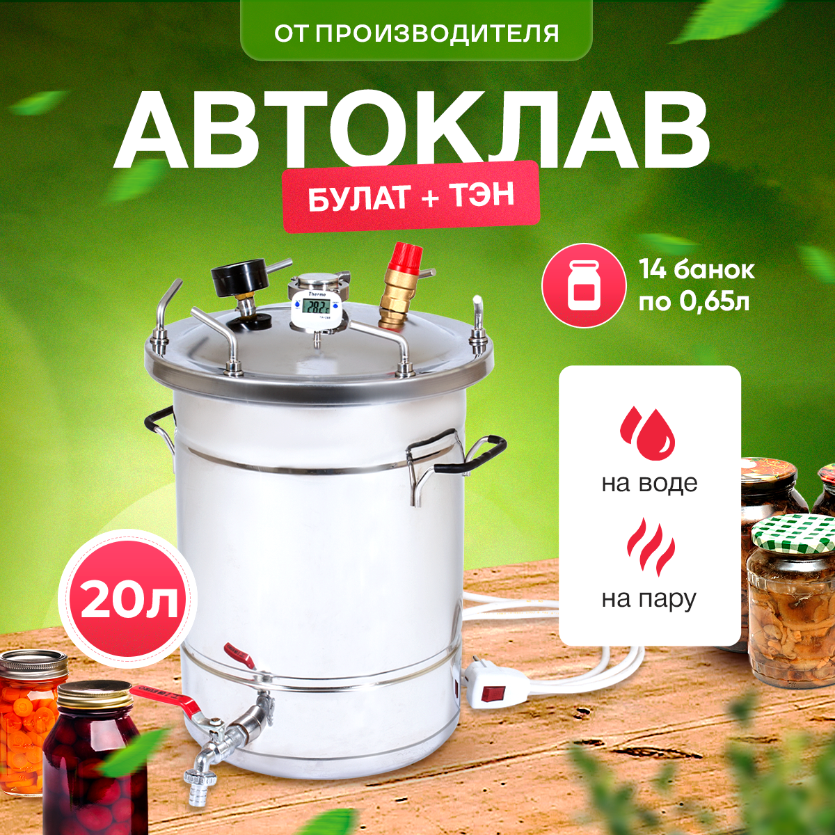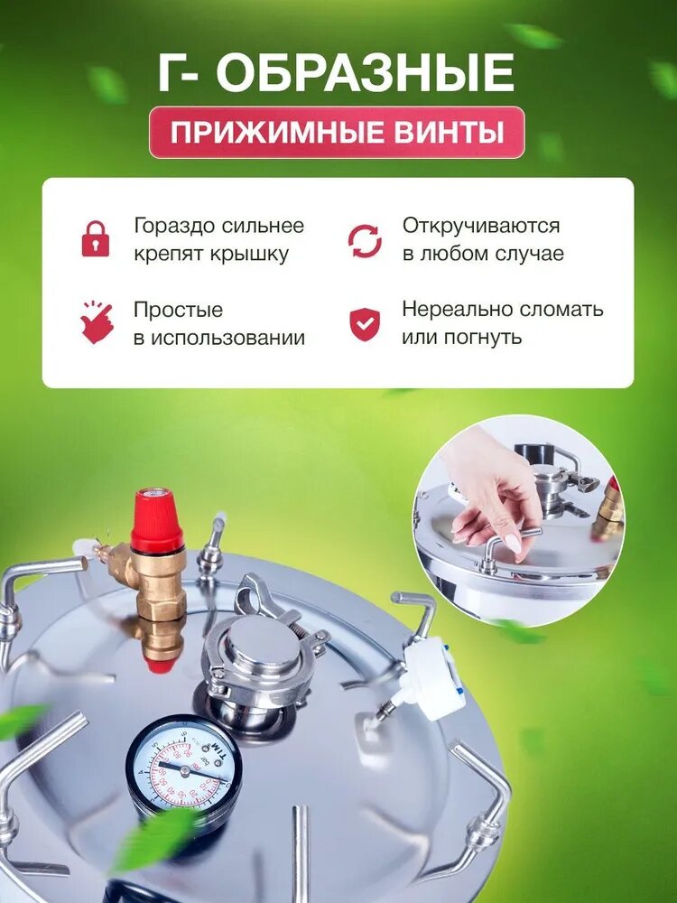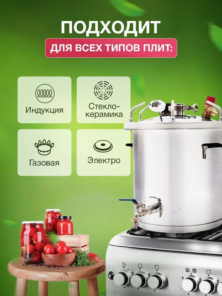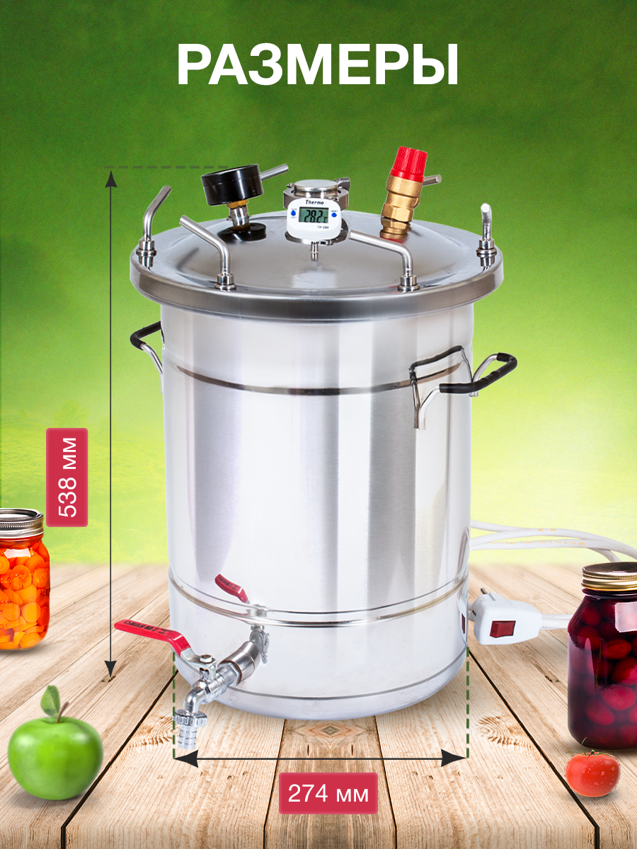 Type: autoclave, purpose: distillation, canning, pickling, cooking, moonshine, body material: metal, control: mechanical
