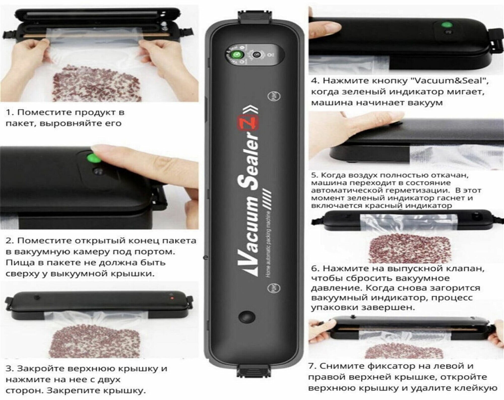 Type: vacuum sealer, purpose: vacuuming, packaging, body material: plastic, control: electronic