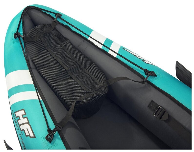 Kayak, 2 aluminum paddles 2.18 m, Air Hammer™ 62086 hand pump, 2 removable keels, 2 seats with storage compartments, storage bag, repair patch; built-in drain valve; deflated size 333 x 113 cm