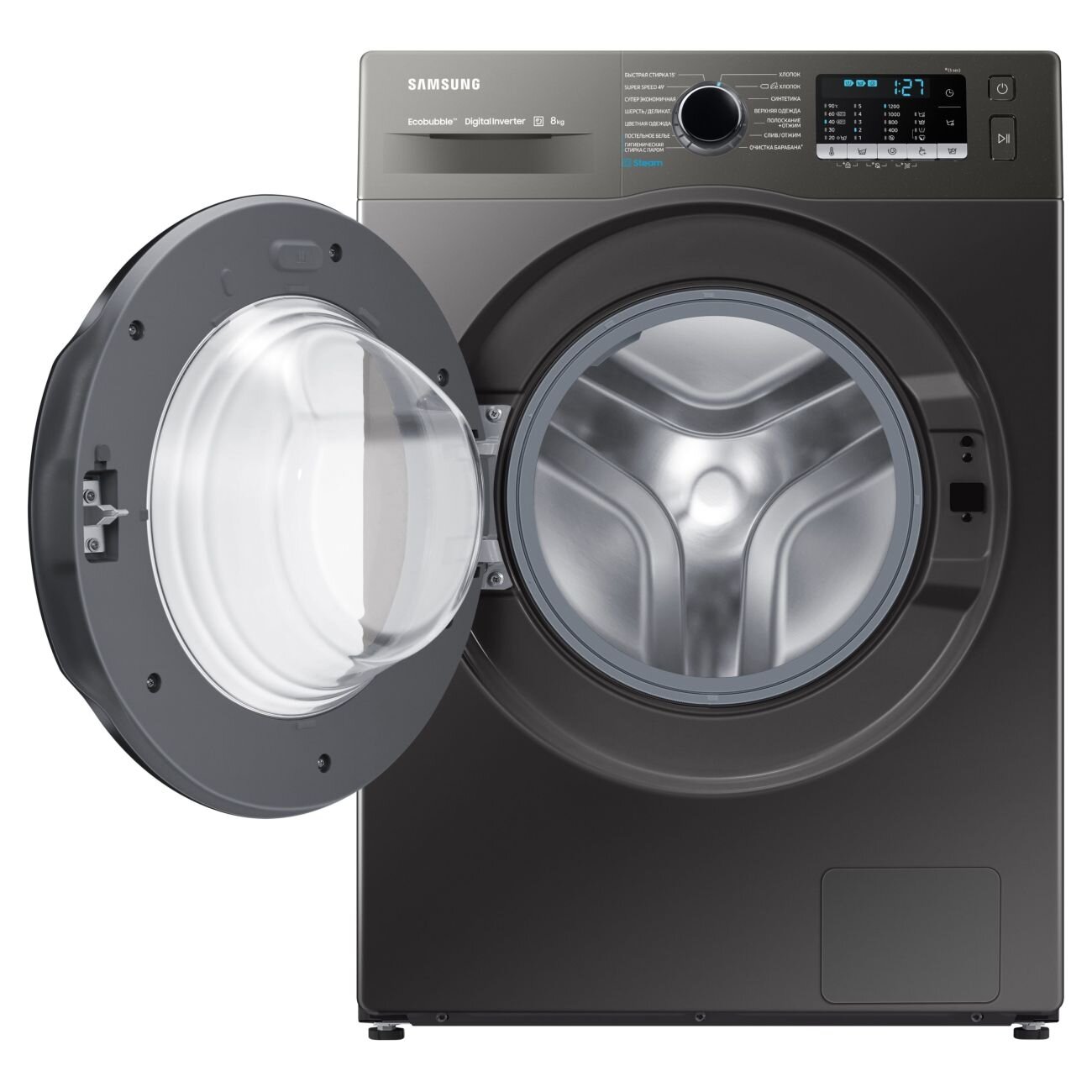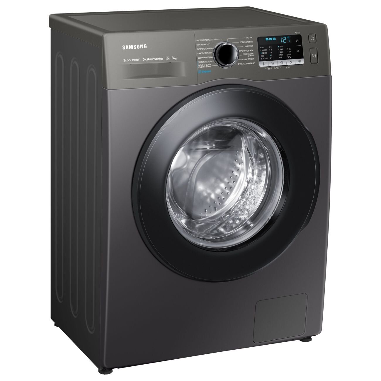 Ecobubble - effect in cold water. Durable with inverter motor. Power consumption - 2300. Wash with steam. The motor is inverter. Rinse+Spin. Prewash. Economical ECO wash. Mini program - 15 min. R