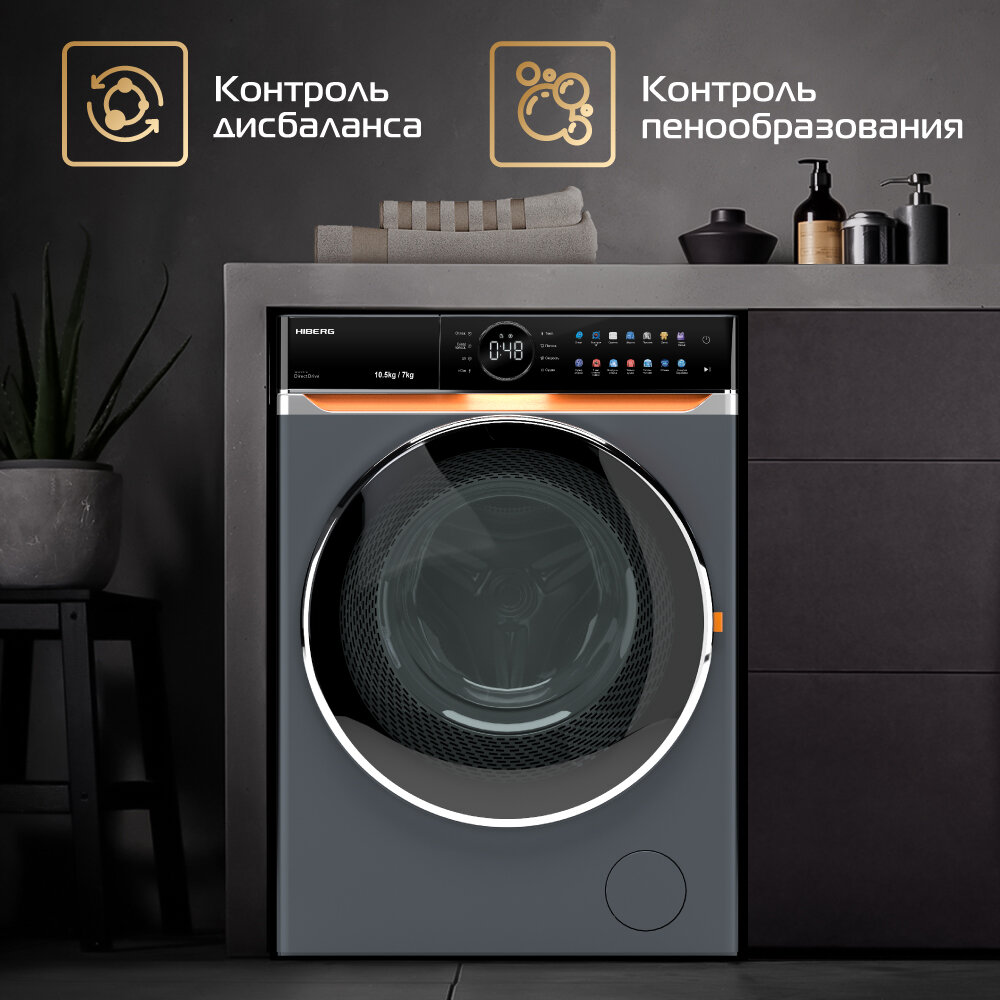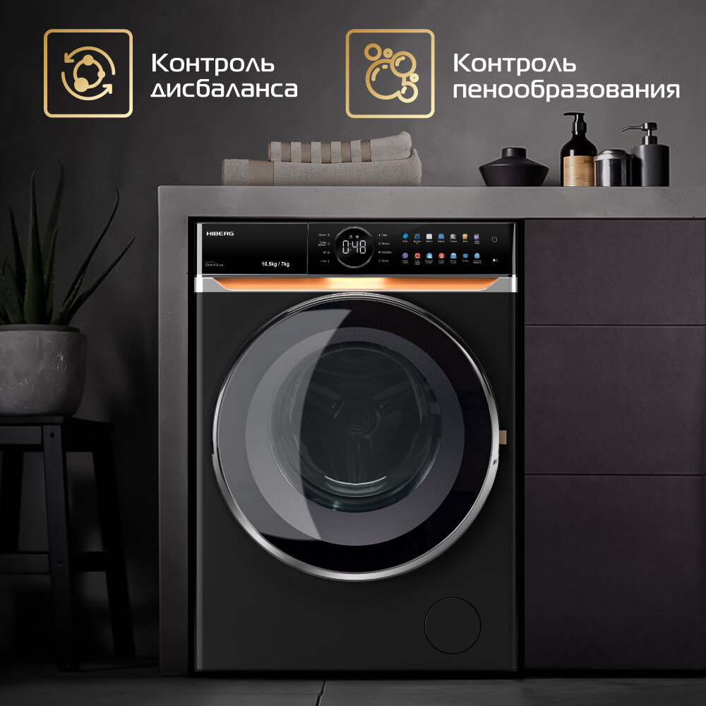 Automatic detergent dosage, spin speed selection, washing temperature selection, intelligent washing control, balance control, foam level control, delayed start, wash end signal