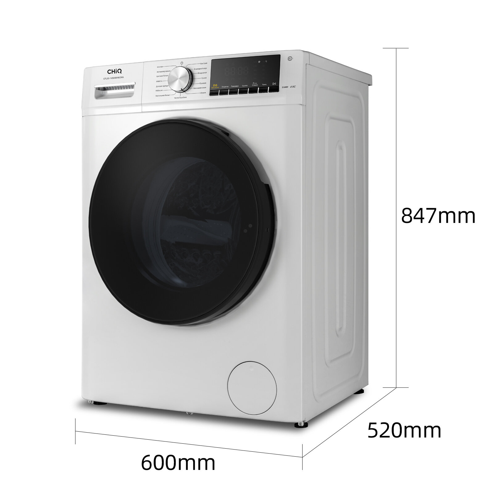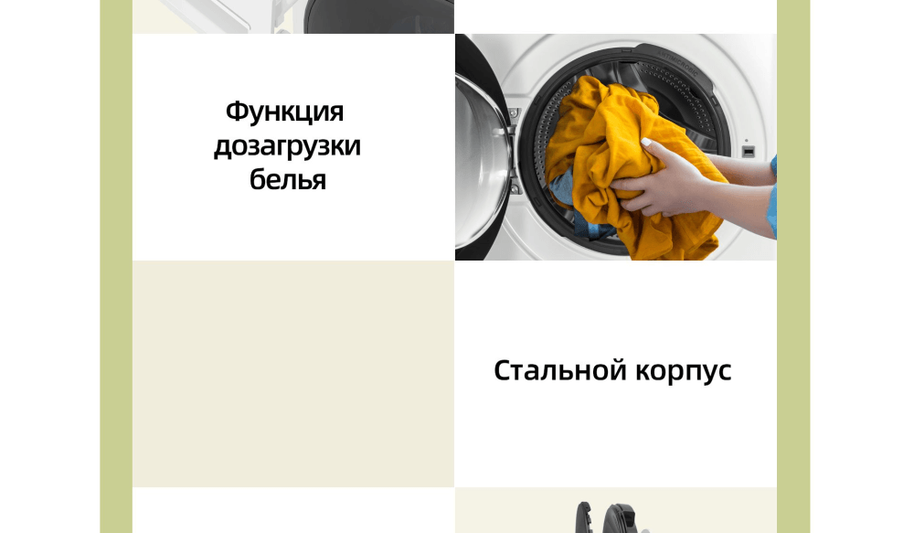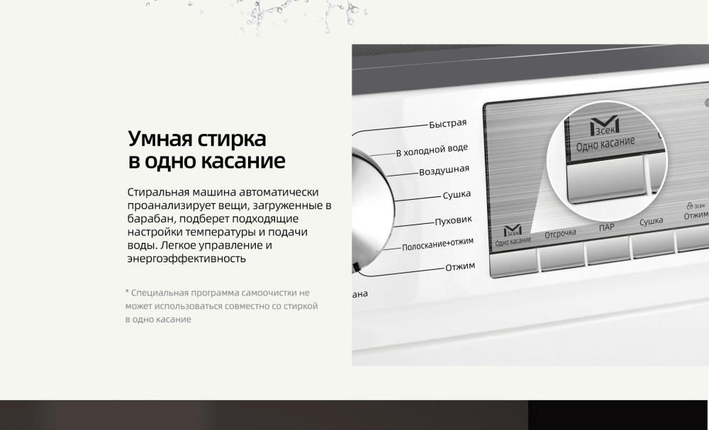 Selection of spin speed, selection of washing temperature, delayed start, drum cleaning, setting the end time of washing