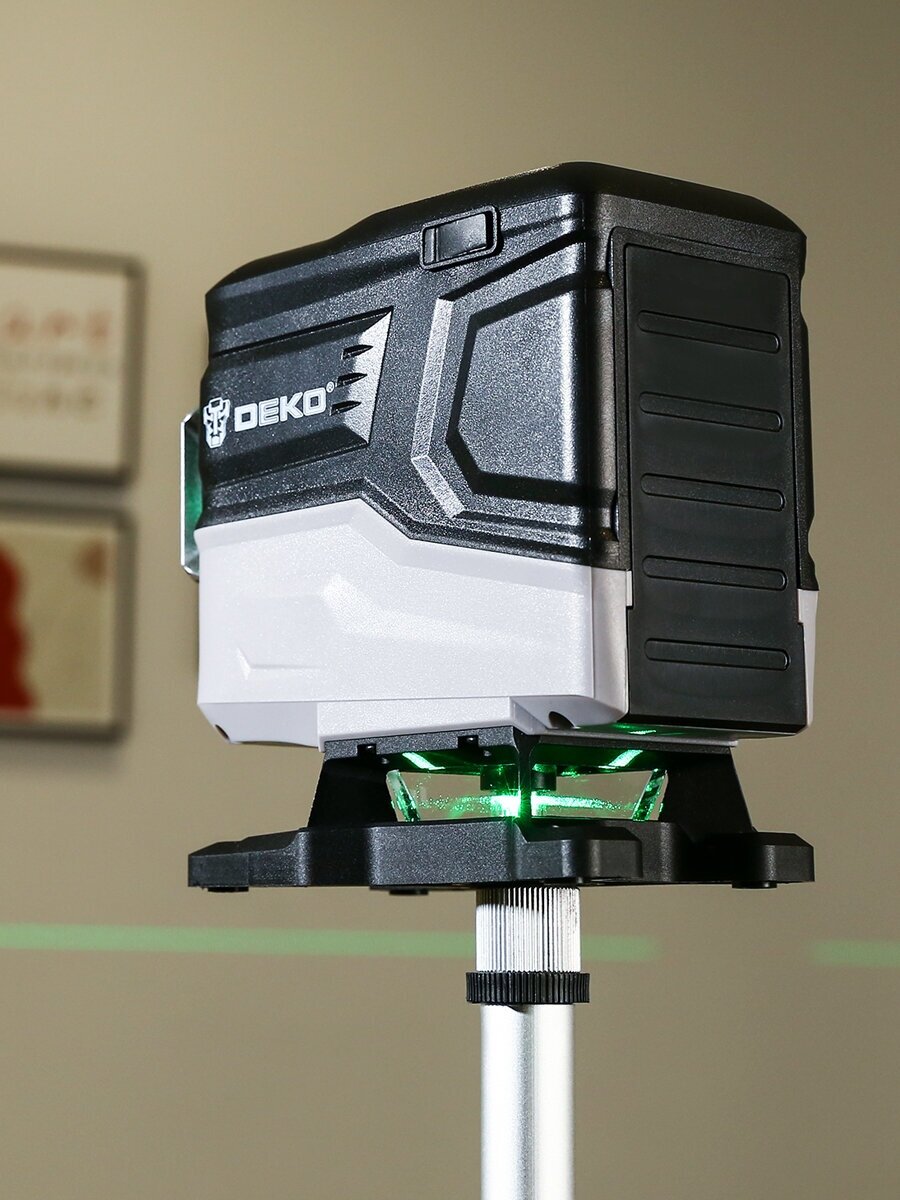 Beam color: red, type: laser, automatic leveling, number of beams: 3 pcs., laser level type: linear, building range without receiver: 30 m, functions: plumb line, leveling off, equipment: very good