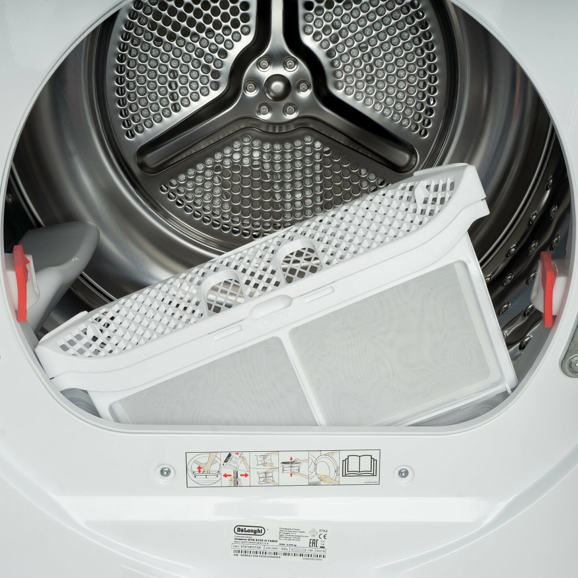 Type: tumble dryer, installation: in a column, freestanding, depth: 609 mm, width: 596 mm, loading type: front, drying type: condensing with heat pump, modes / functions: gentle drying, easy ironing, sound