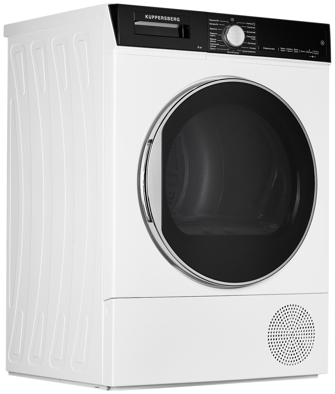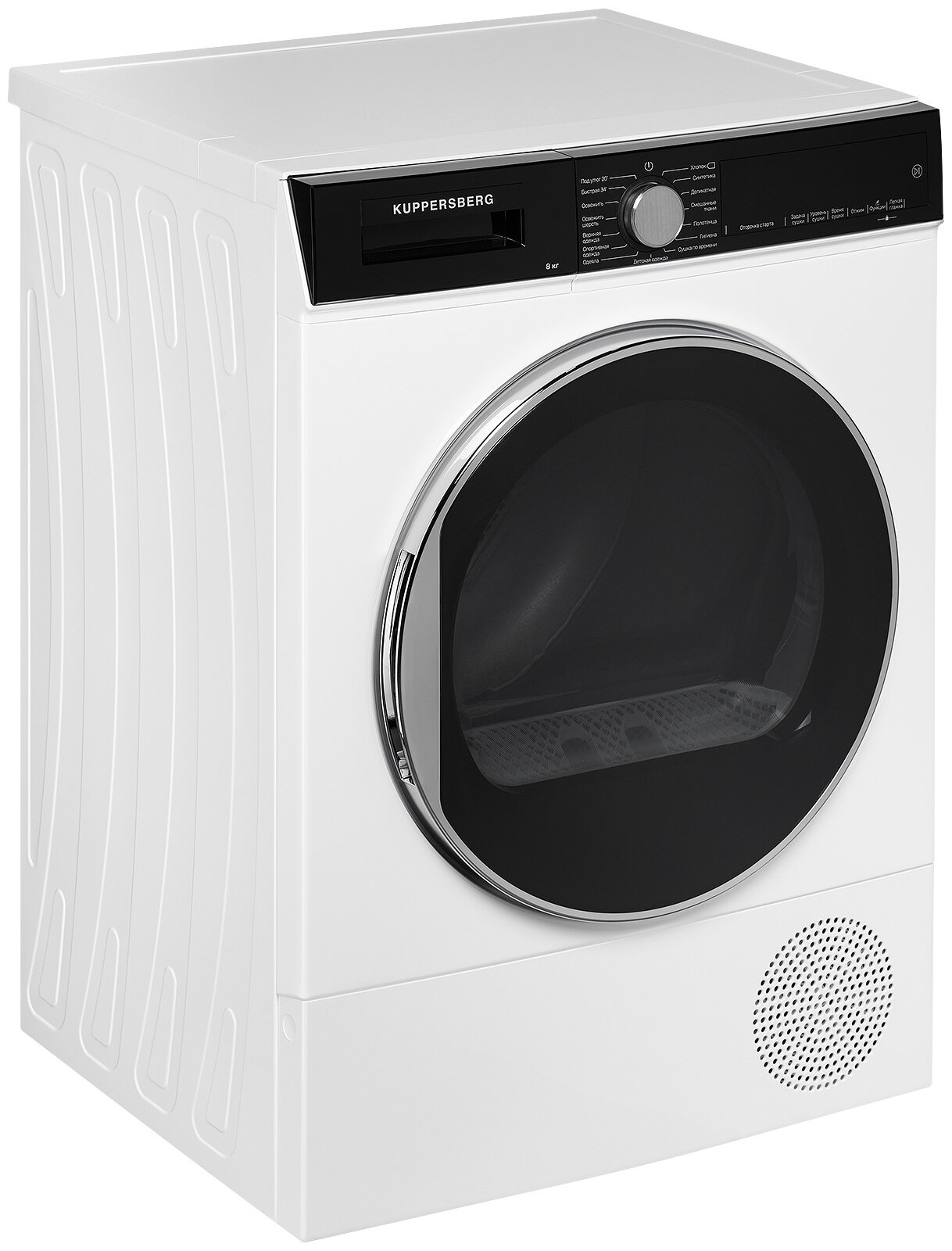 Type: tumble dryer, installation: free-standing, depth: 566 mm, width: 595 mm, loading type: front, modes/functions: quick drying, children's clothing, easy ironing, pillows/blankets, towels, ventilation, synthetics