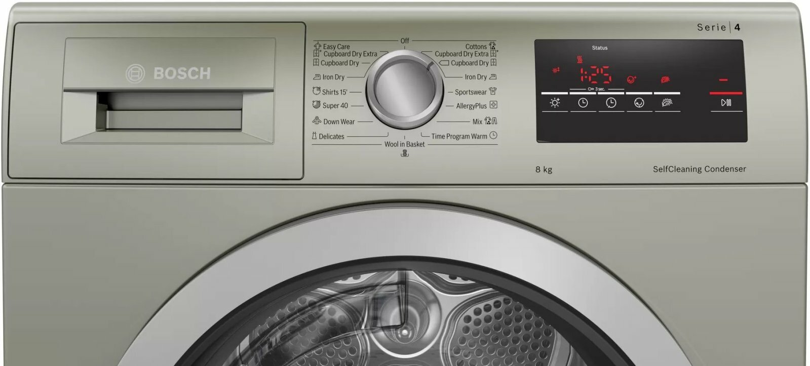 Type: tumble dryer, installation: in a column, freestanding, depth: 609 mm, width: 596 mm, loading type: front, drying type: condensing with heat pump, modes / functions: gentle drying, easy ironing, sound