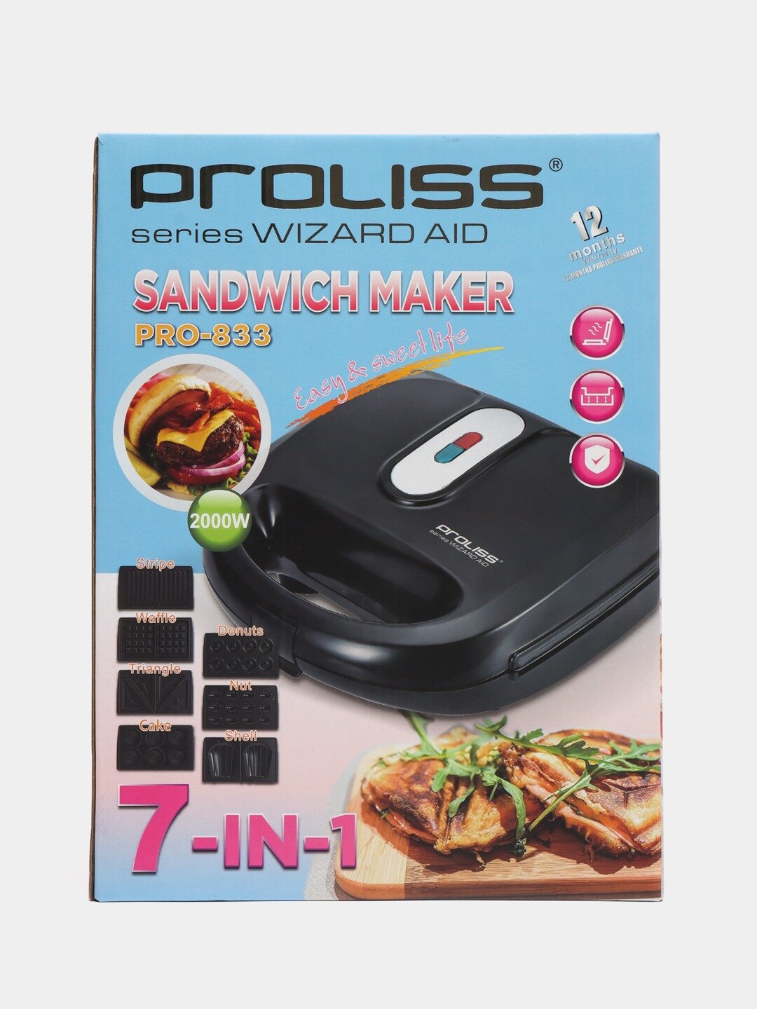 Type: appliance with interchangeable panels, panel type: waffles, grill, sandwiches, waffle panel type: Belgian, power: 790 W, features: non-stick coating, possibility of changing panels, overheating protection, work indicator