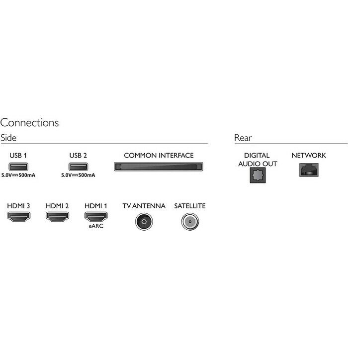 Ethernet - RJ-45, USB Type-A, USB Type-A x 2, HDMI input, HDMI input x 3, digital optical audio output, headphone output, CI slot x 2, CI/CI+ slot