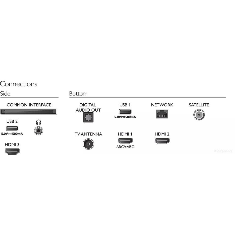 Ethernet - RJ-45, USB Type-A, USB Type-A x 2, HDMI input, HDMI input x 3, digital optical audio output, headphone output, CI slot, CI/CI+ slot