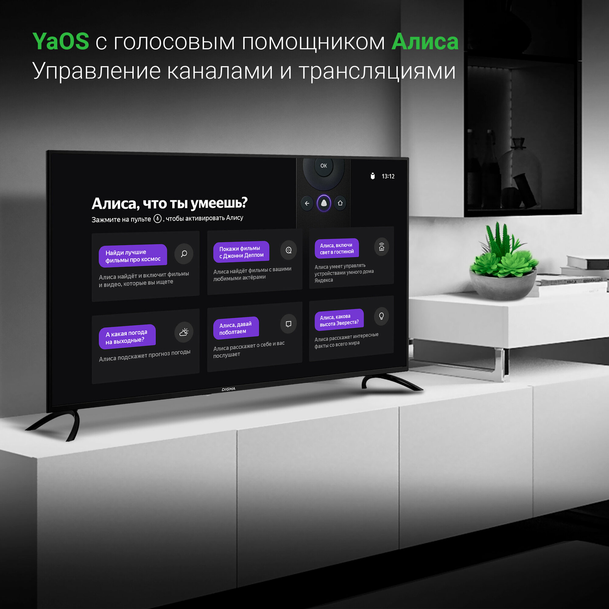 Diagonal: 51"-57", diagonal exactly: 55", HD resolution: 4K UHD, screen refresh rate: 60 Hz, screen technology: HDR, LED, Digital TV support: DVB-C, DVB-S, DVB-S2, DVB-T, DVB-T2, analog PAL, SECAM, NTSC, no, Smart TV platform: YaOS, wireless