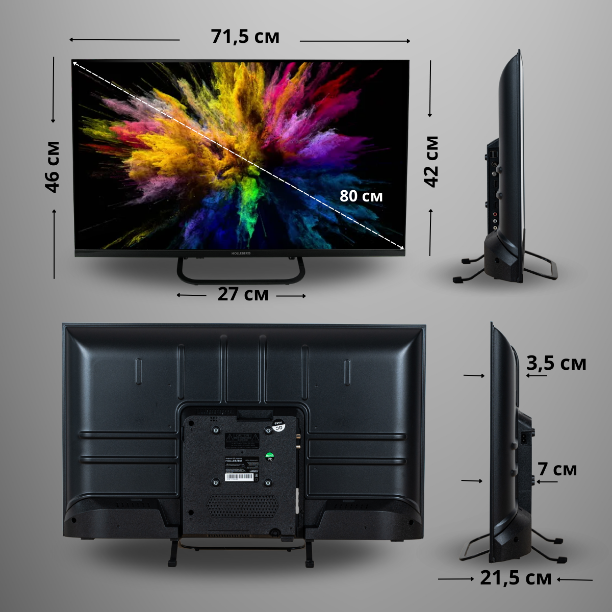 Diagonal: 32"-39", diagonal exactly: 32", HD resolution: 720p HD, screen refresh rate: 60 Hz, screen technology: LED, Digital TV support: DVB-S2, DVB-T2, Number of HDMI inputs: 3