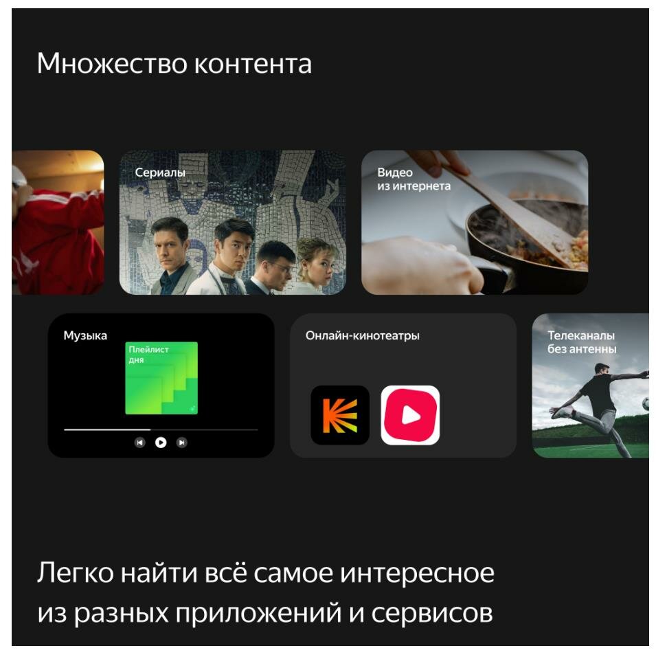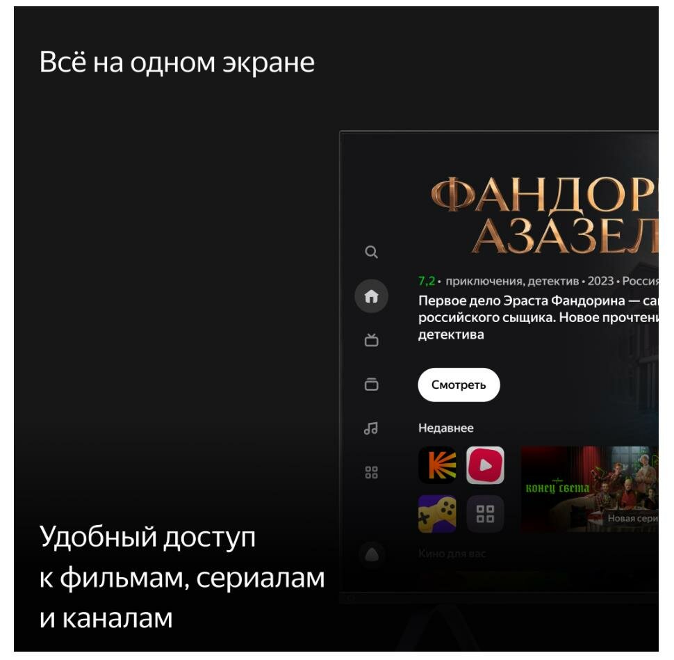 Diagonal: 40"-45", diagonal exactly: 42", HD resolution: Full HD, screen refresh rate: 60 Hz, screen technology: LED, Digital TV support: DVB-C, DVB-S, DVB-S2, DVB- T, DVB-T2, Smart TV platform: YaOS, wireless communications: Bluetooth, Wi-Fi, Number of i