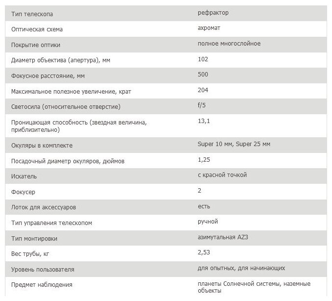 Sky-Watcher AC102/500 StarQuest EQ1 + set of filters Moon and Mars