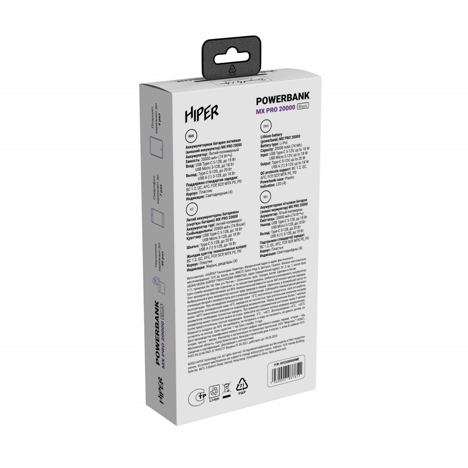External Hiper MX Pro 20000, 20000 mAh, 3A, USB, QC, PD, black
