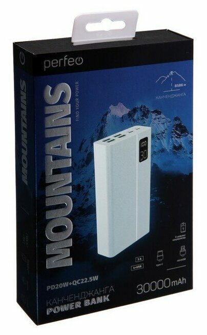 External Perfeo MOUNTAINS PF_D0162, 30000 mAh, 4 USB, 3A, fast charging, white
