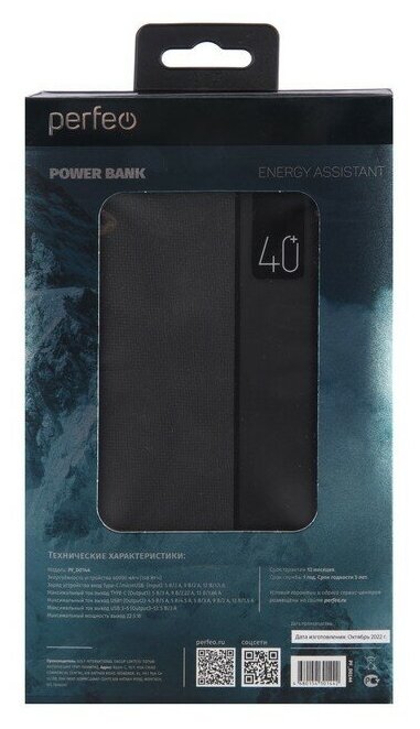 External Perfeo MOUNTAINS PF_D0144, 40000 mAh, 4 USB, 3A, fast charging, black