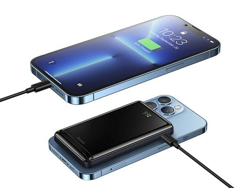 Capacity: 10000 mAh, compatibility: MagSafe, wireless charging, max. output current: 3A, features: charging two devices