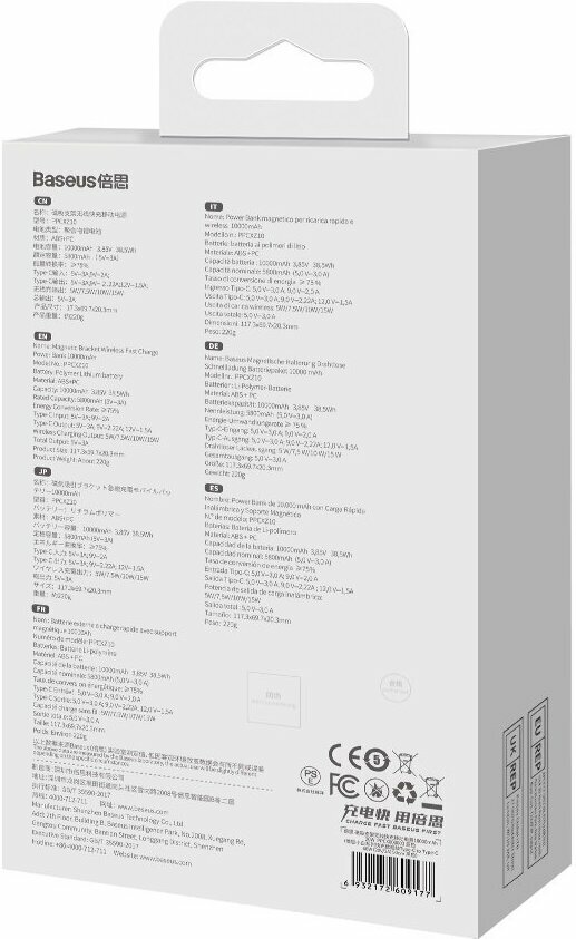 Capacity: 10000 mAh, compatibility: wireless charging, fast charging, max. output current: 3A