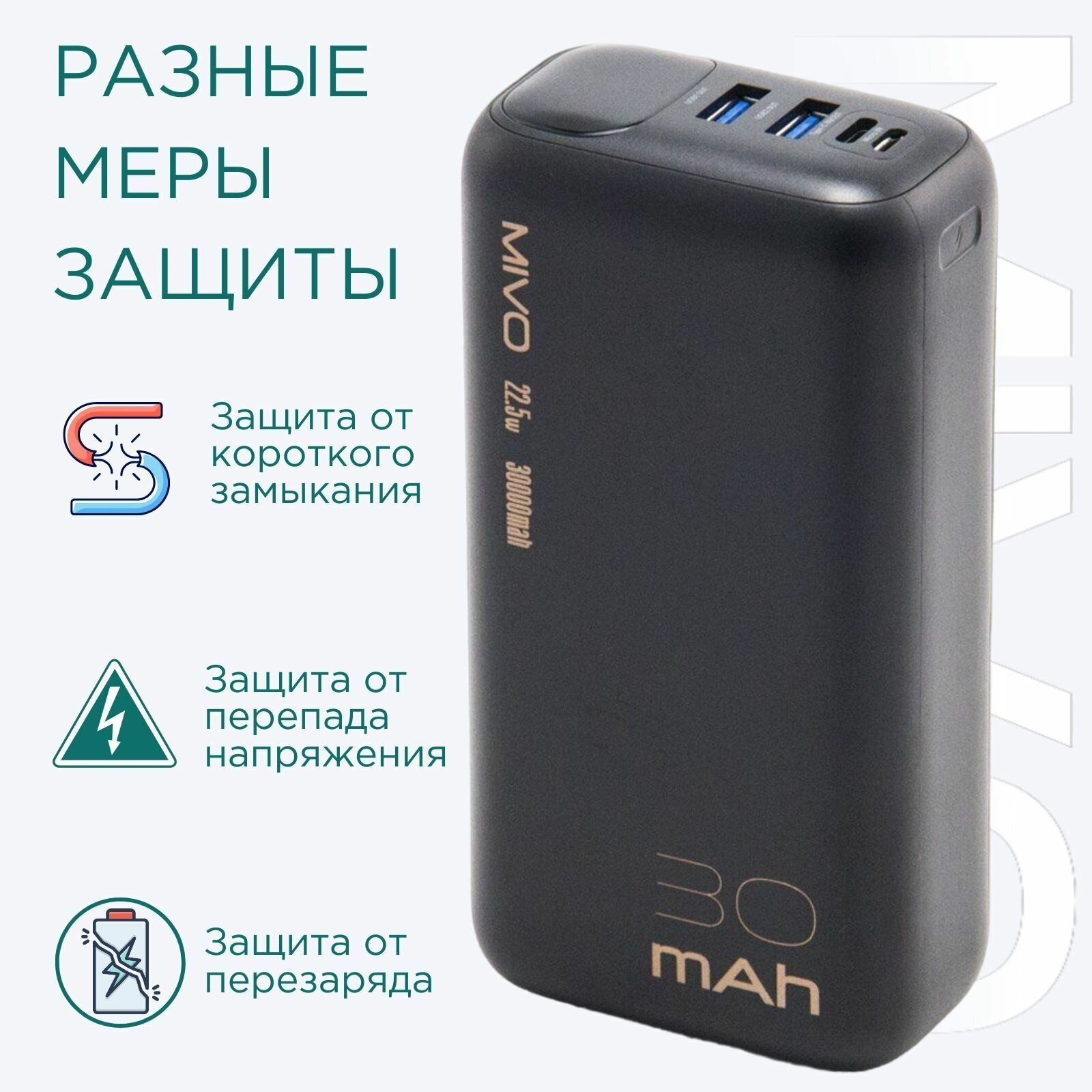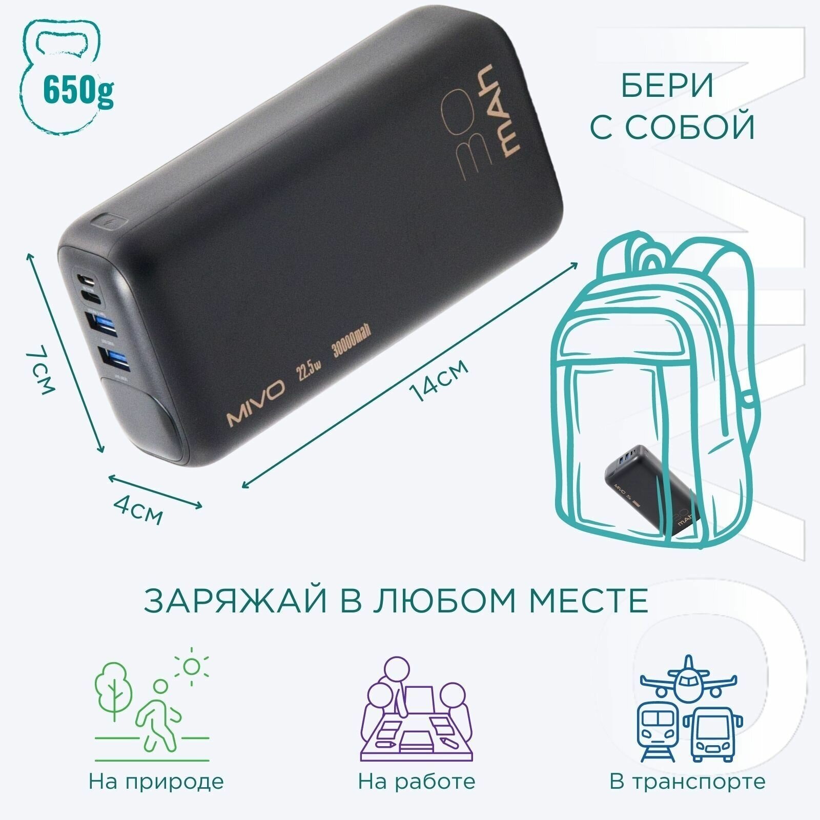 Mivo MB-308Q is a unique and modern portable charger with a capacity of 30000mAh. It will be an excellent assistant for those who like to travel, relax in nature or use their mobile devices to the fullest.