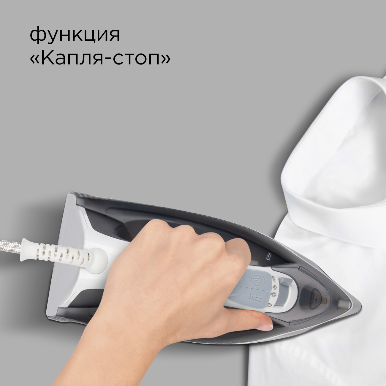 Automatic steam control, boost of steam, constant steam, steam control, temperature control, self-cleaning system, dry ironing, spray function