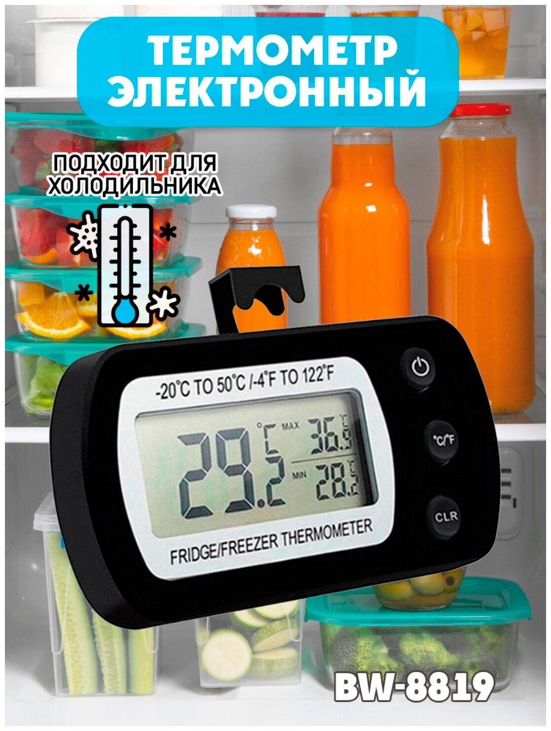 Type: thermometer, measurements: room temperature, installation: wall, tabletop