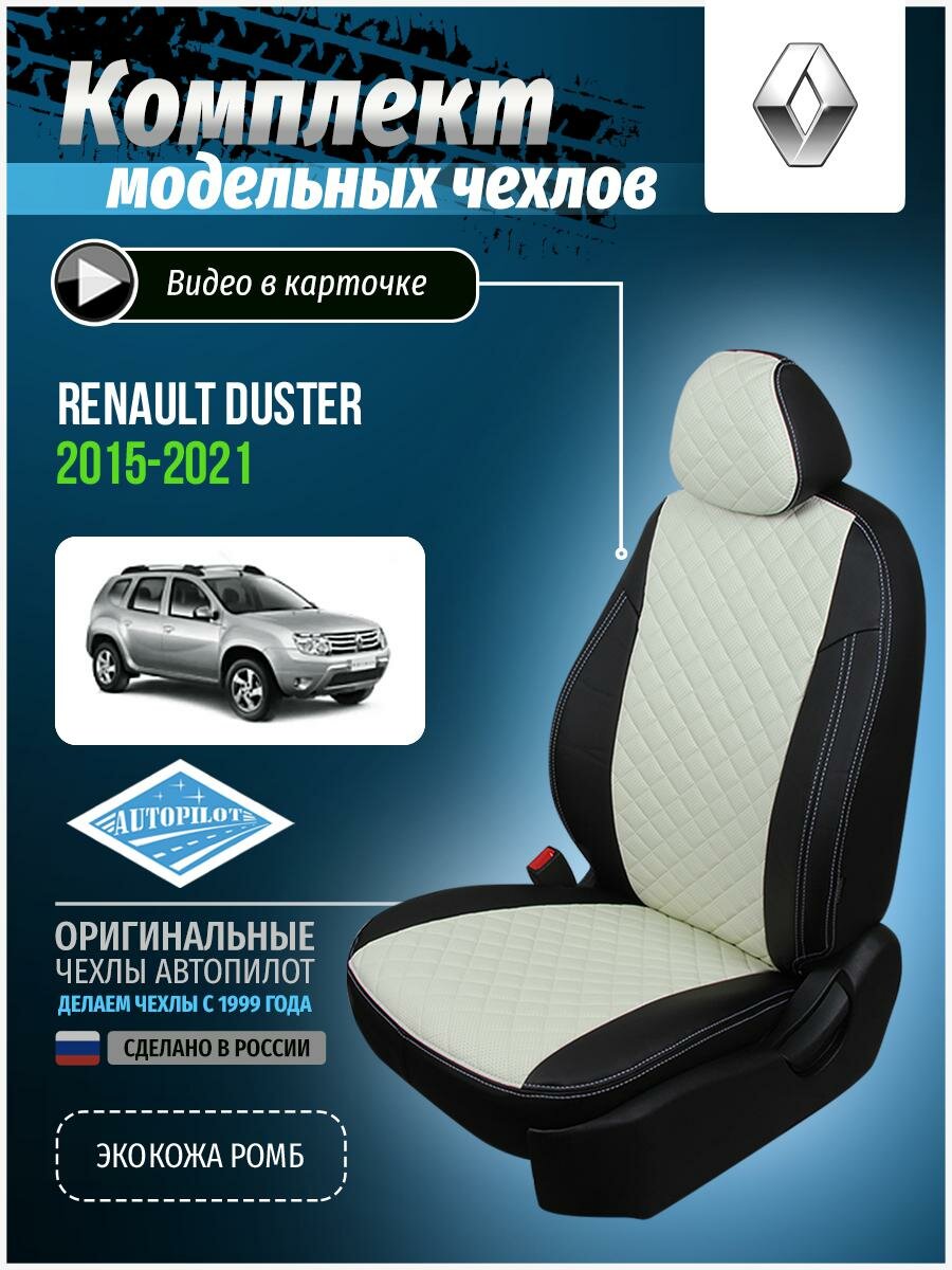 Type: cover, purpose: on the headrest, on the seat, on the back, car model: Nissan Terrano, Renault Duster, material: artificial leather, foam rubber, spunbond, eco-leather, functions: protection against dirt, seat position: rear, front