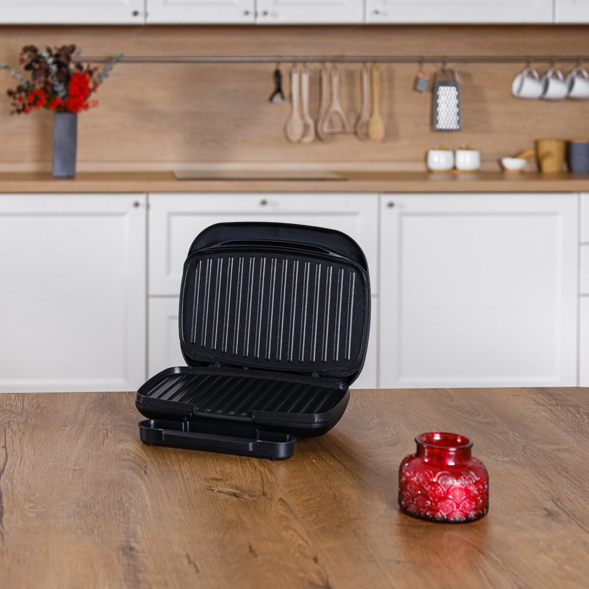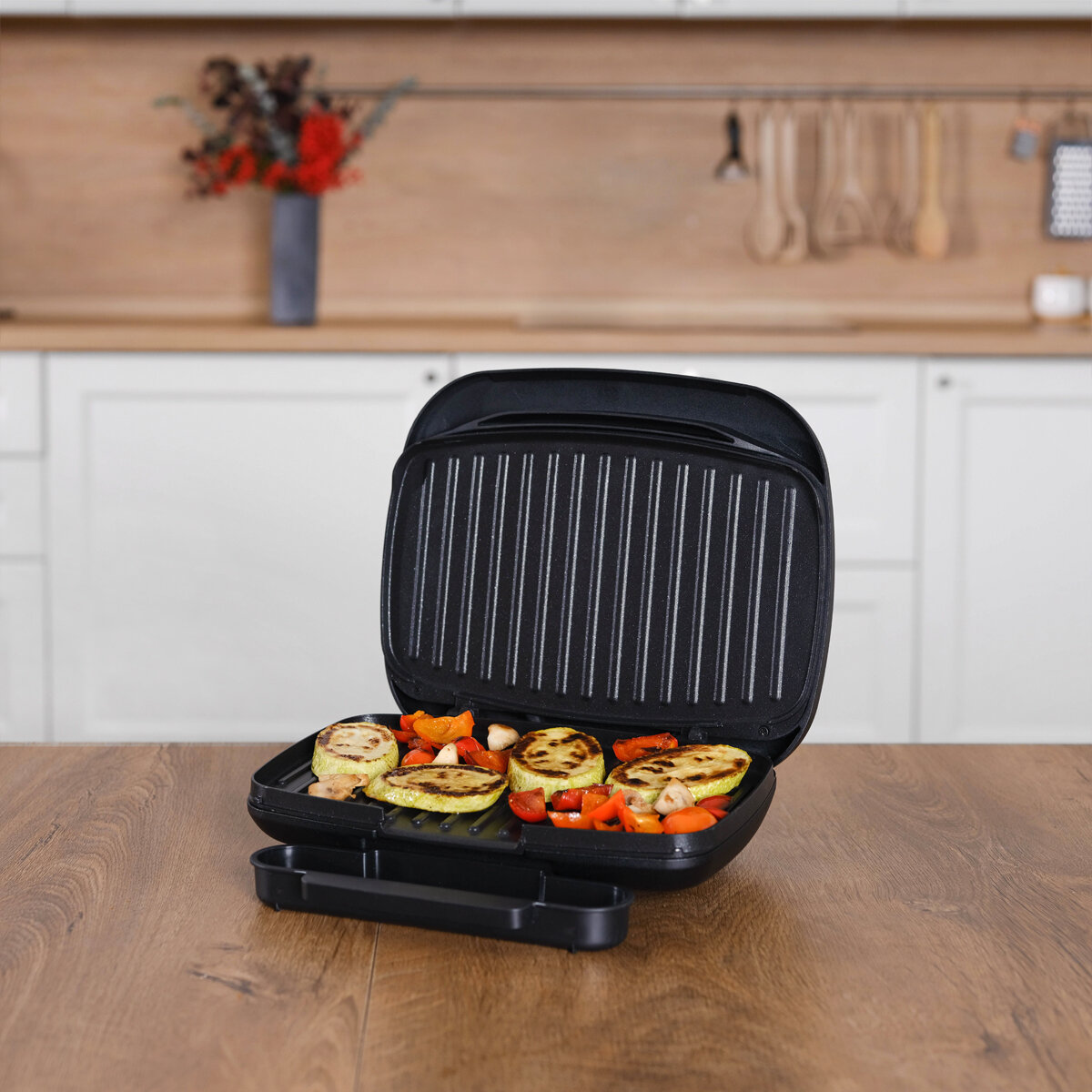 Type: grill, power: 1000 W, control: mechanical, features: non-stick coating, fat collection tray, weight: 15 kg