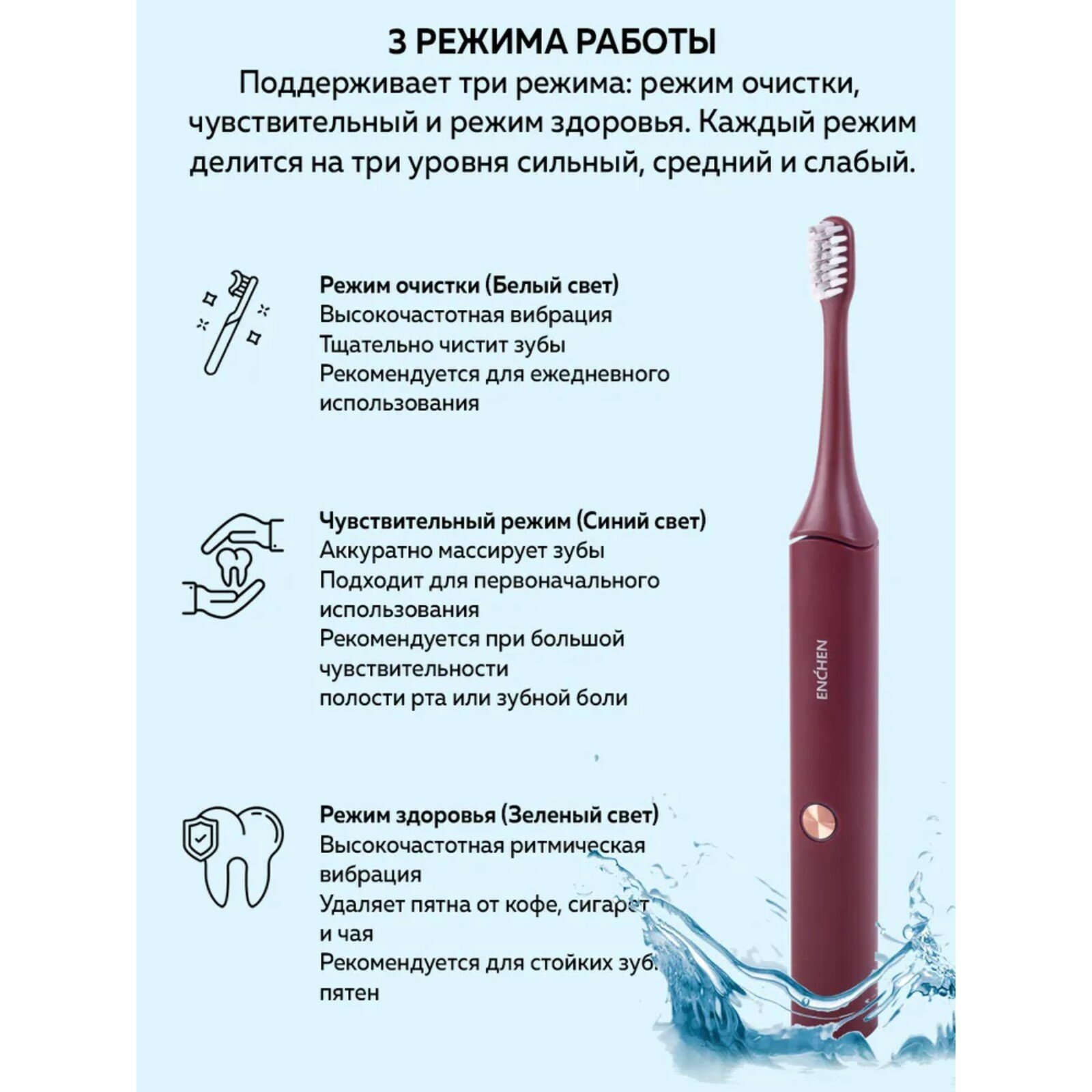 Electric toothbrush Enchen Aurora T+, sonic, 40000 strokes/min, 1 brush head, red