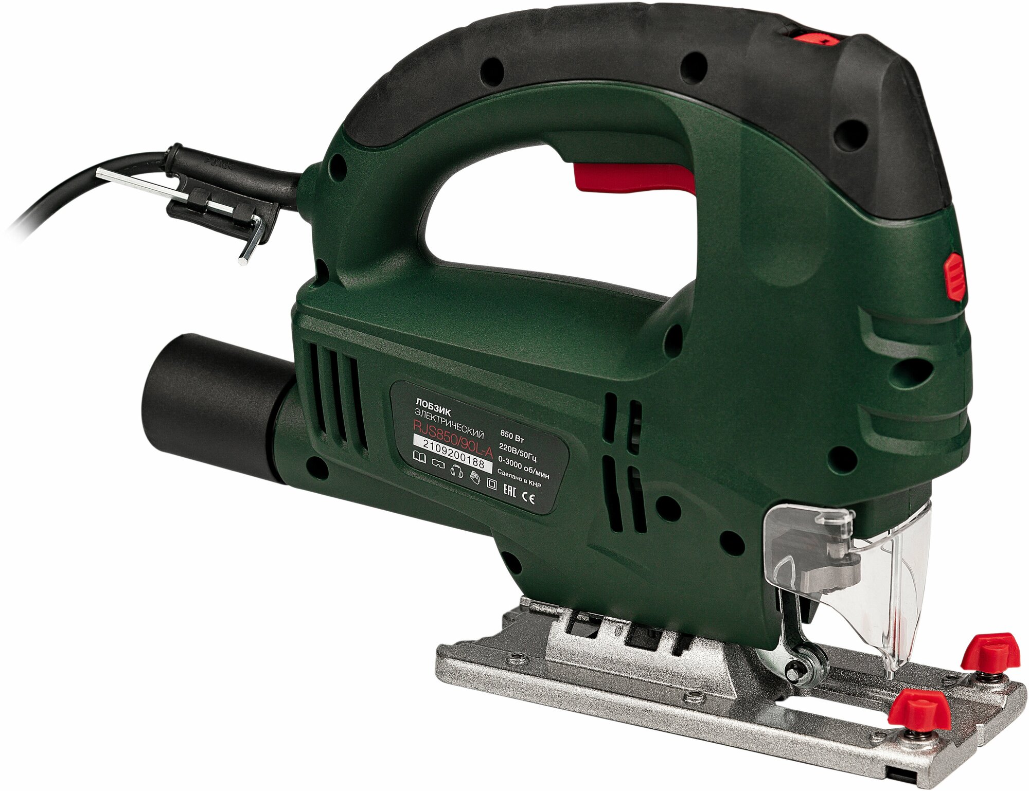 Power type: mains, power: 850 W, functions: pendulum stroke, soft start, stroke frequency adjustment, speed stabilization system, design features: ability to connect a vacuum cleaner, protective shield, laser
