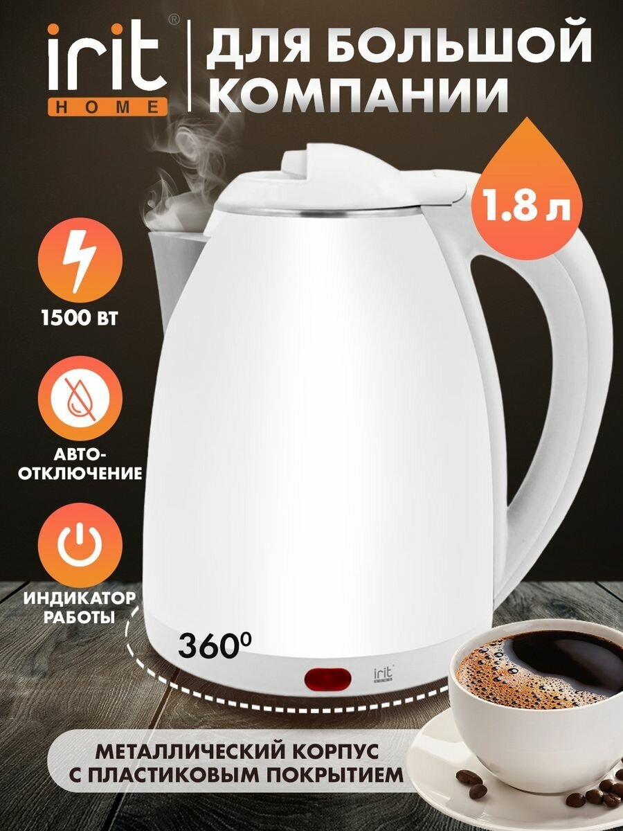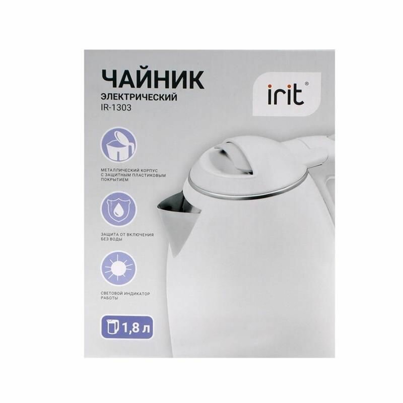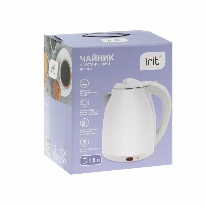 Type: kettle, body material: metal/plastic, volume: 1.80 l, type of heating element: closed, features: 360 degree rotation, on indication, cord storage compartment