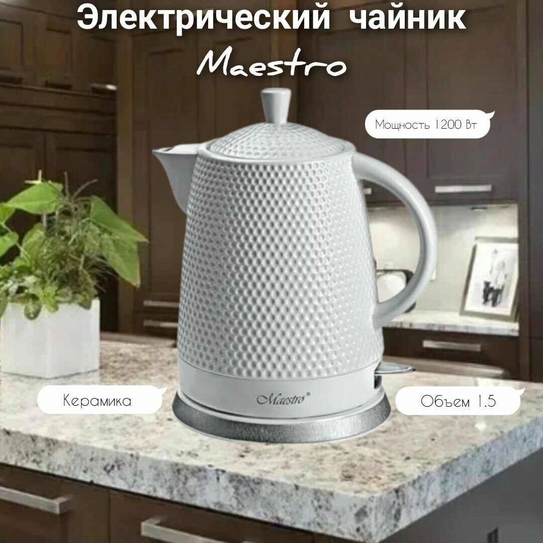 Type: kettle, case material: ceramics, volume: 1.50 l, type of heating element: closed, features: on indication