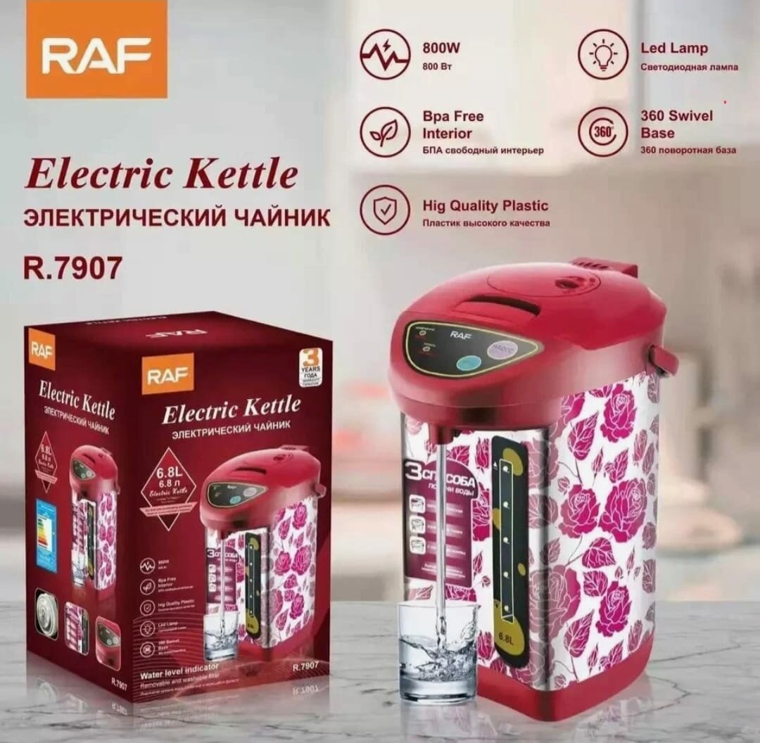 Type: thermopot, body material: plastic, volume: 6.80 l, heating element type: closed, additional functions: long-term boiling, temperature maintenance, features: silent boiling, 360 degree rotation