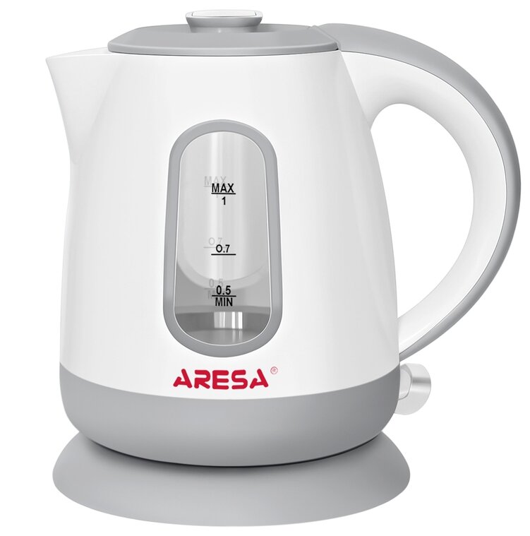 Type: kettle, body material: plastic, volume: 1 l, type of heating element: closed, features: 360 degree rotation, water level indicator, cord storage compartment, filter