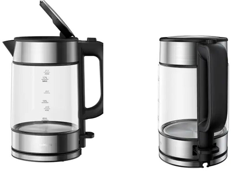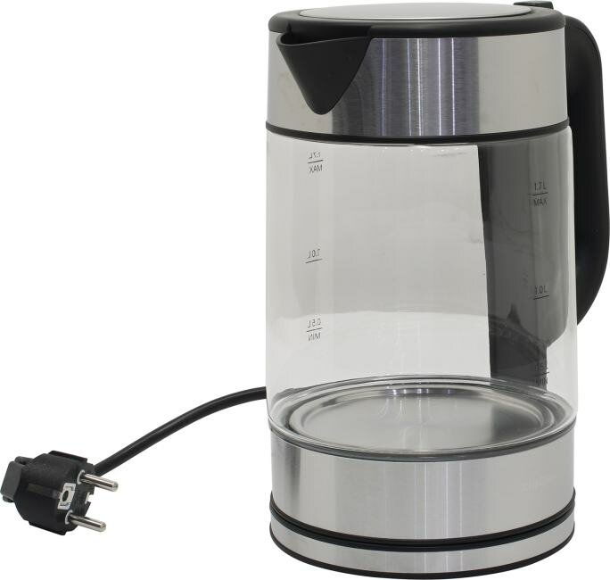 Type: kettle, body material: metal/glass, volume: 1.70 l, type of heating element: closed, features: 360 degree rotation, water level indicator, power on indication, cord storage compartment, filter