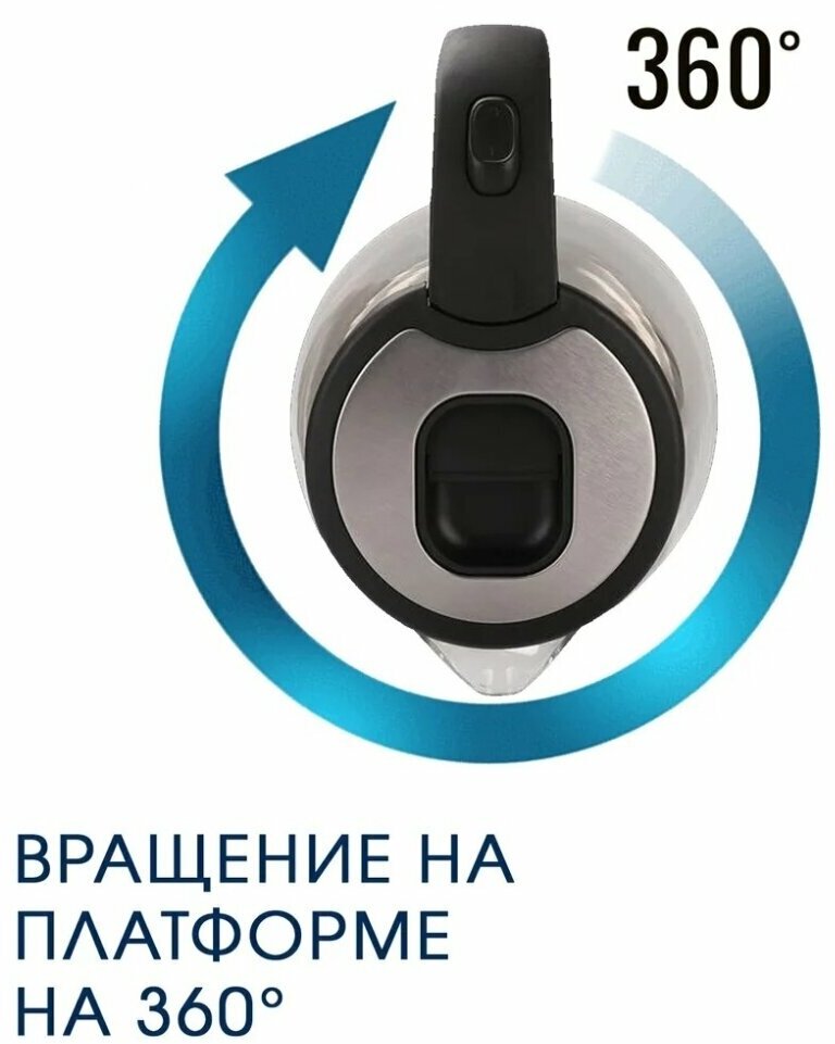 Type: kettle, body material: plastic/glass, volume: 1.80 l, type of heating element: closed, features: 360 degree rotation, on indication