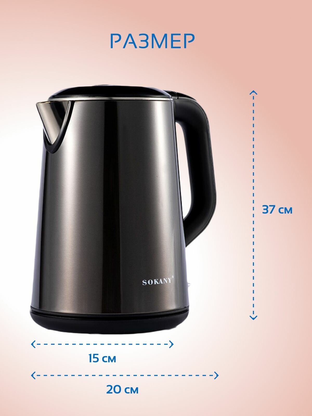 Type: kettle, body material: metal, volume: 2.20 l, heating element type: closed, additional functions: long-term boiling, features: silent boiling, 360 degree rotation