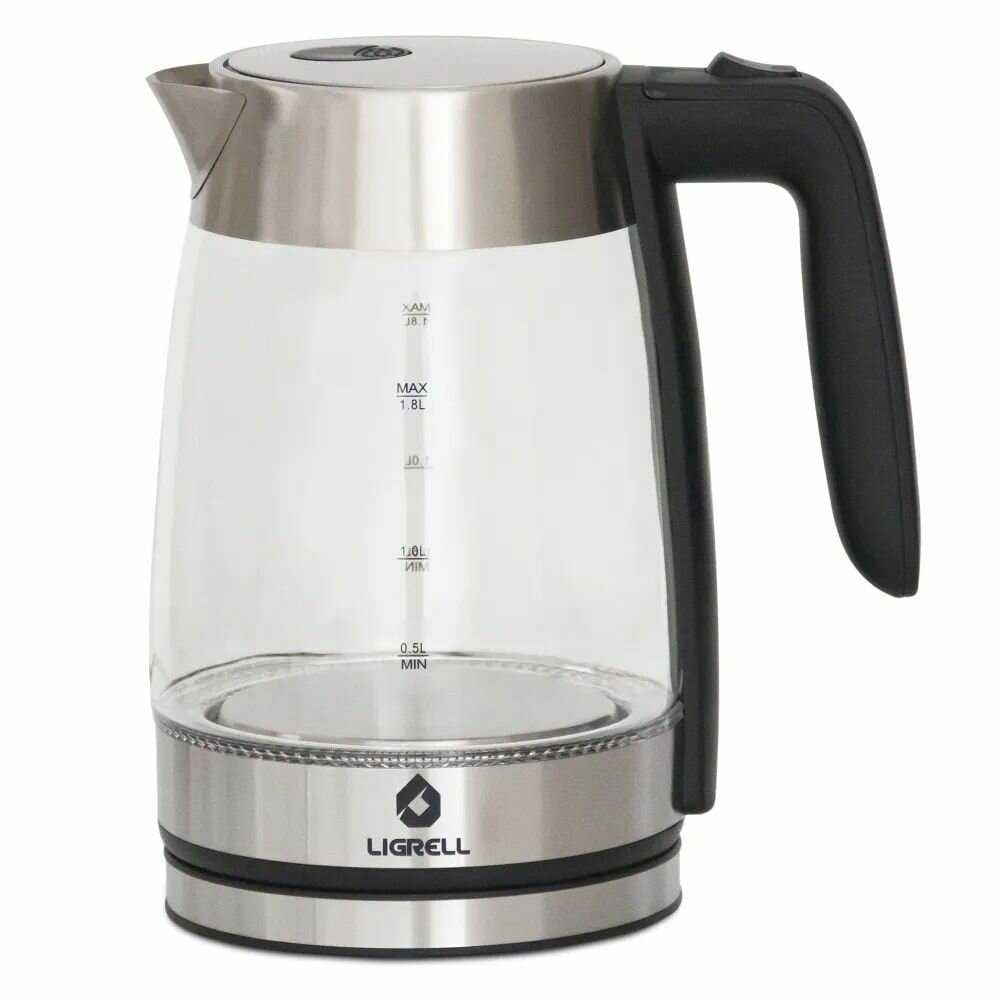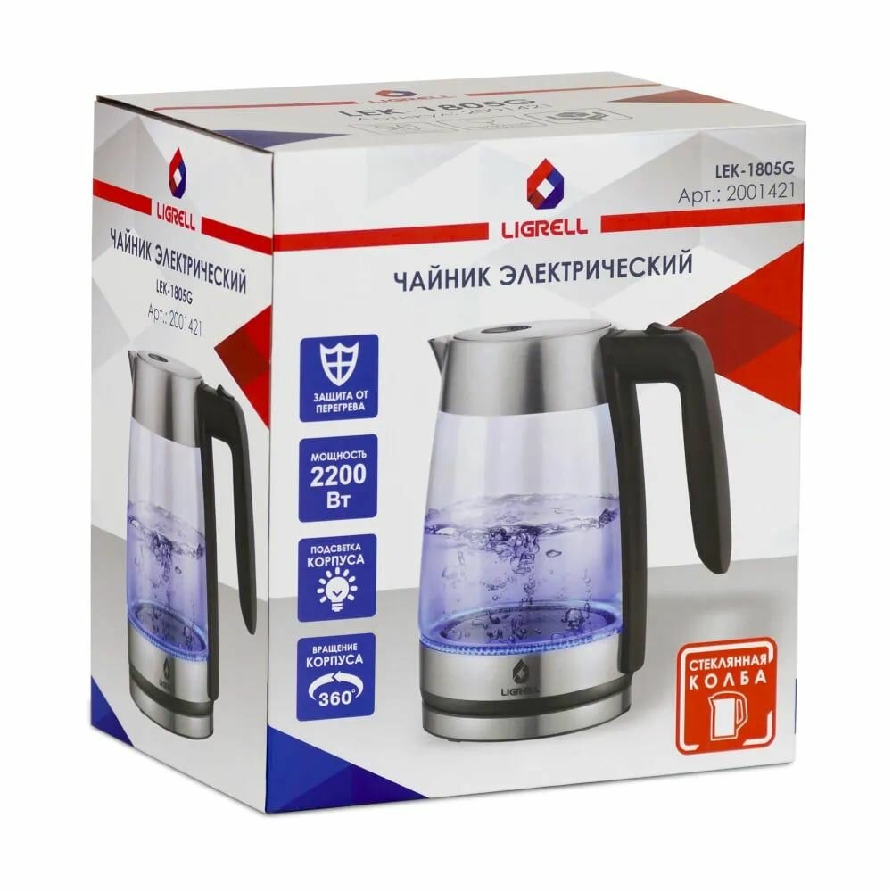 Type: kettle, body material: plastic/glass, volume: 1.80 l, heating element type: closed, features: 360 degree rotation, water level indicator