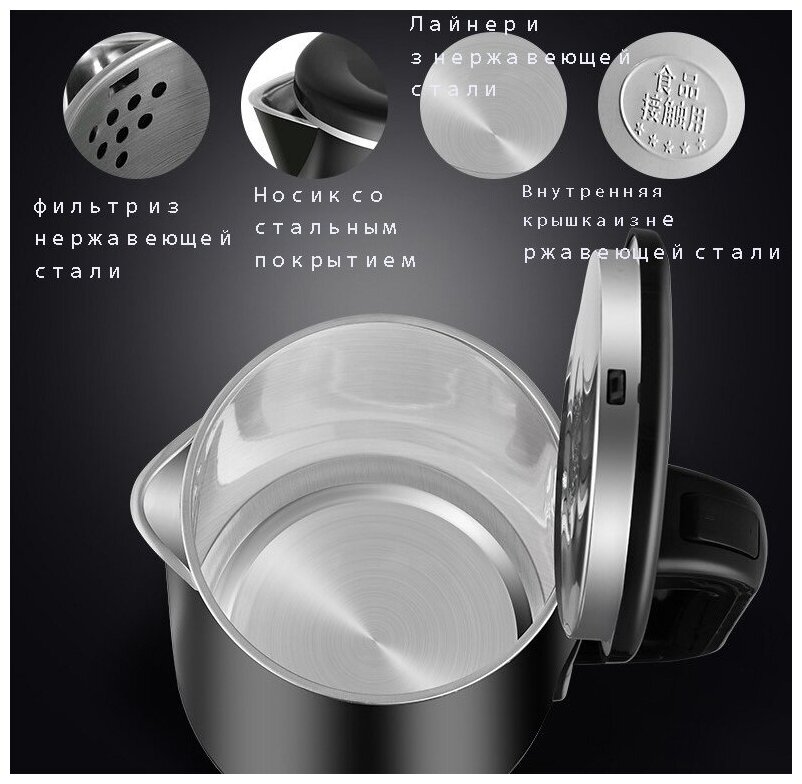 Type: kettle, case material: metal, volume: 2 l, features: touch control